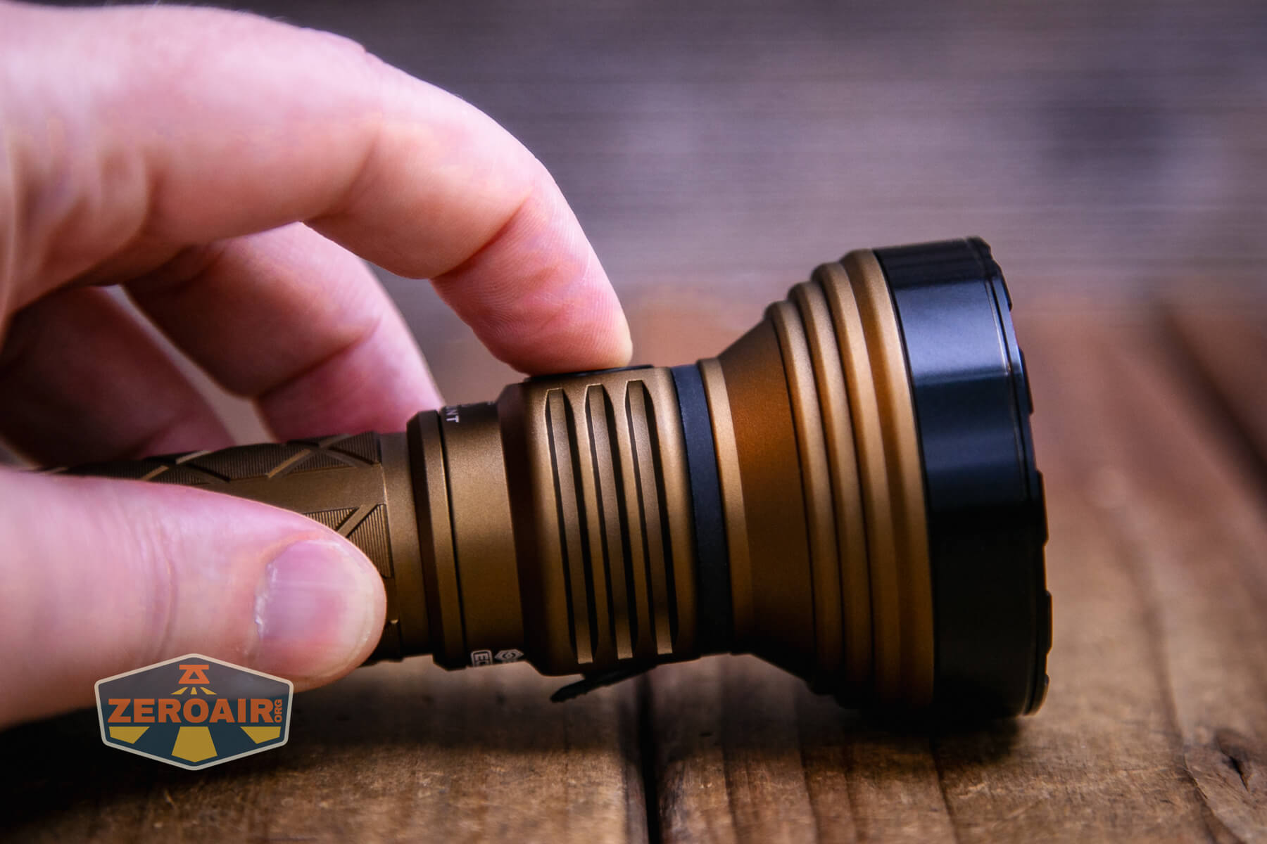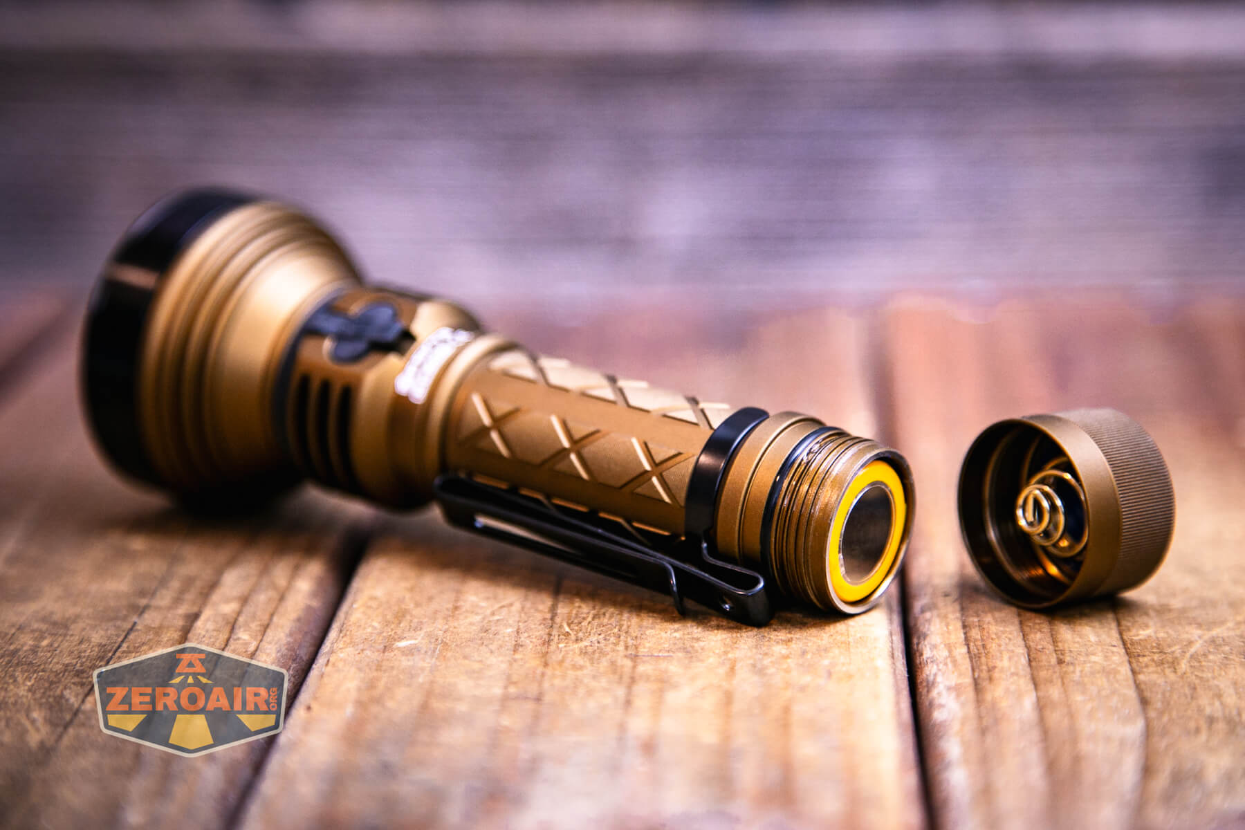 Also above is the light beside a TorchLAB BOSS 35, an 18350 light. I reviewed the aluminum version of that light in both 35 and 70 formats. I also reviewed that specific edition, the “Oveready BOSS FT Collector Vintage Brass” 35. I love it!