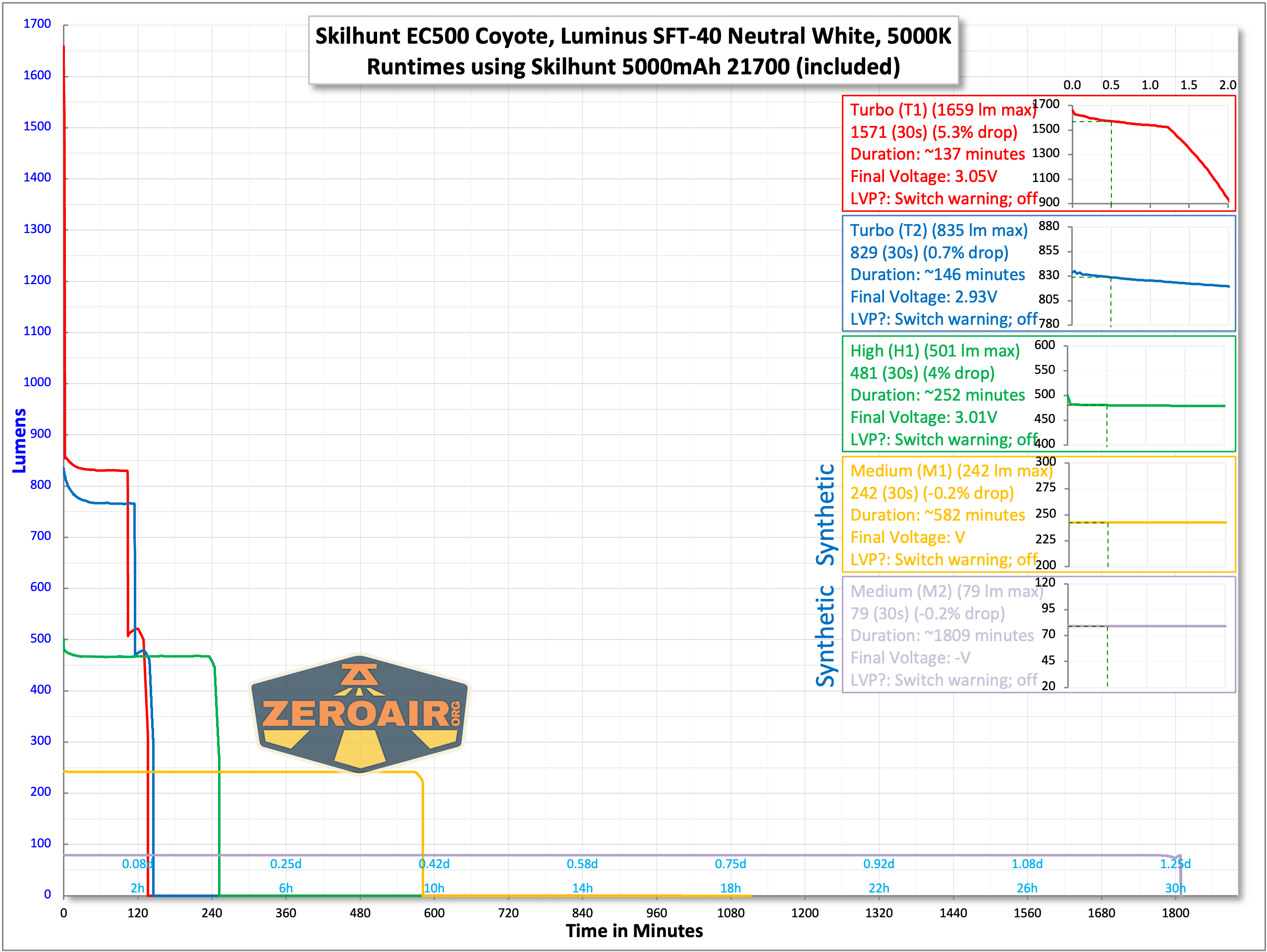 Those last two runtimes in the graph above are synthetic runtime tests. If that term doesn’t make any sense to you, hit that link! I explained it in detail there. For the SRTs, I did use a synthetic cell of the same capacity as Skilhunt’s 21700.