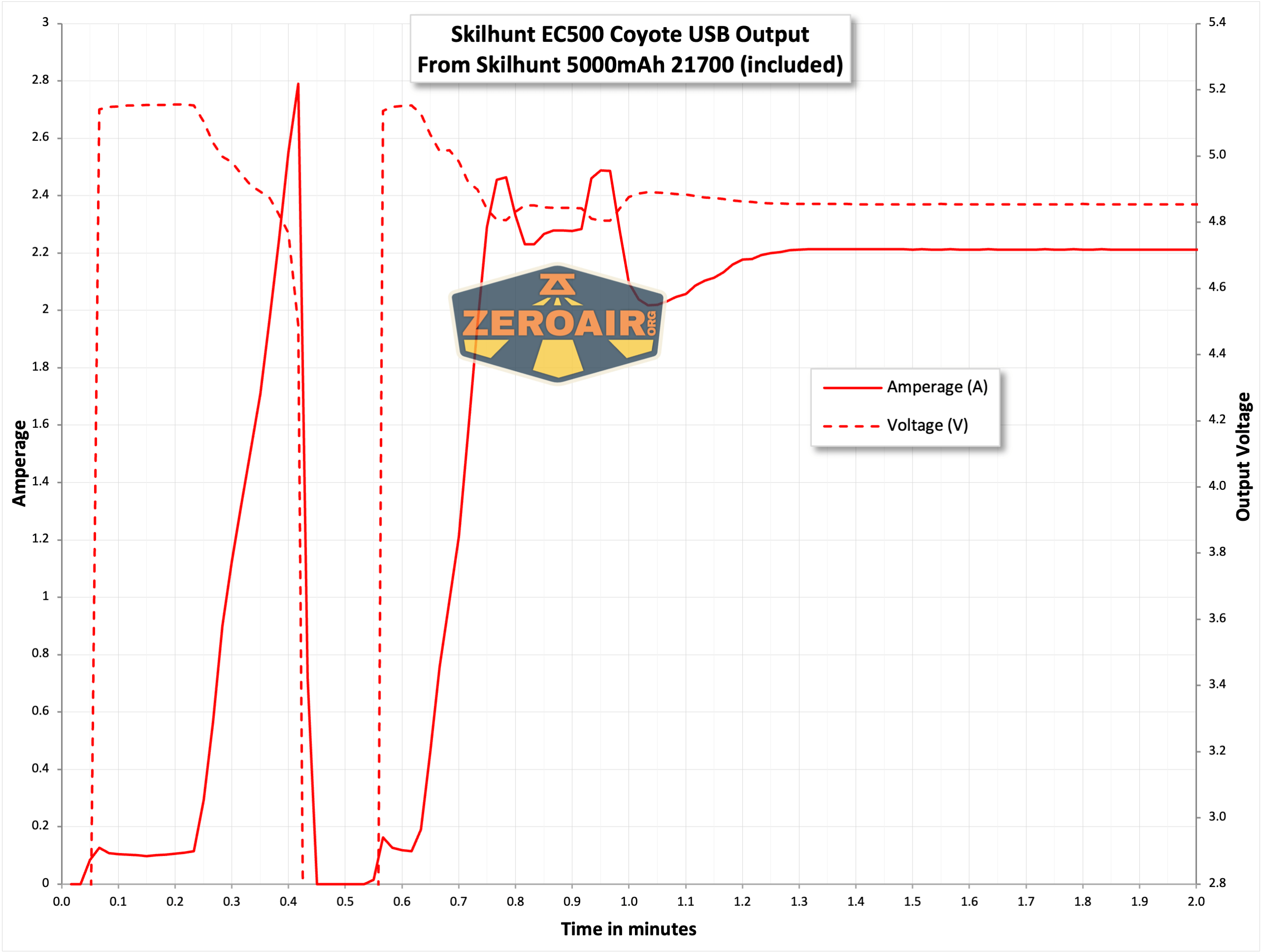 The Skilhunt EC500 warm white flashlight does function as a powerbank, too! With the 5000mAh 21700, you should be able to get at least an emergency-level charge to phones. Below is the test from one cycle.