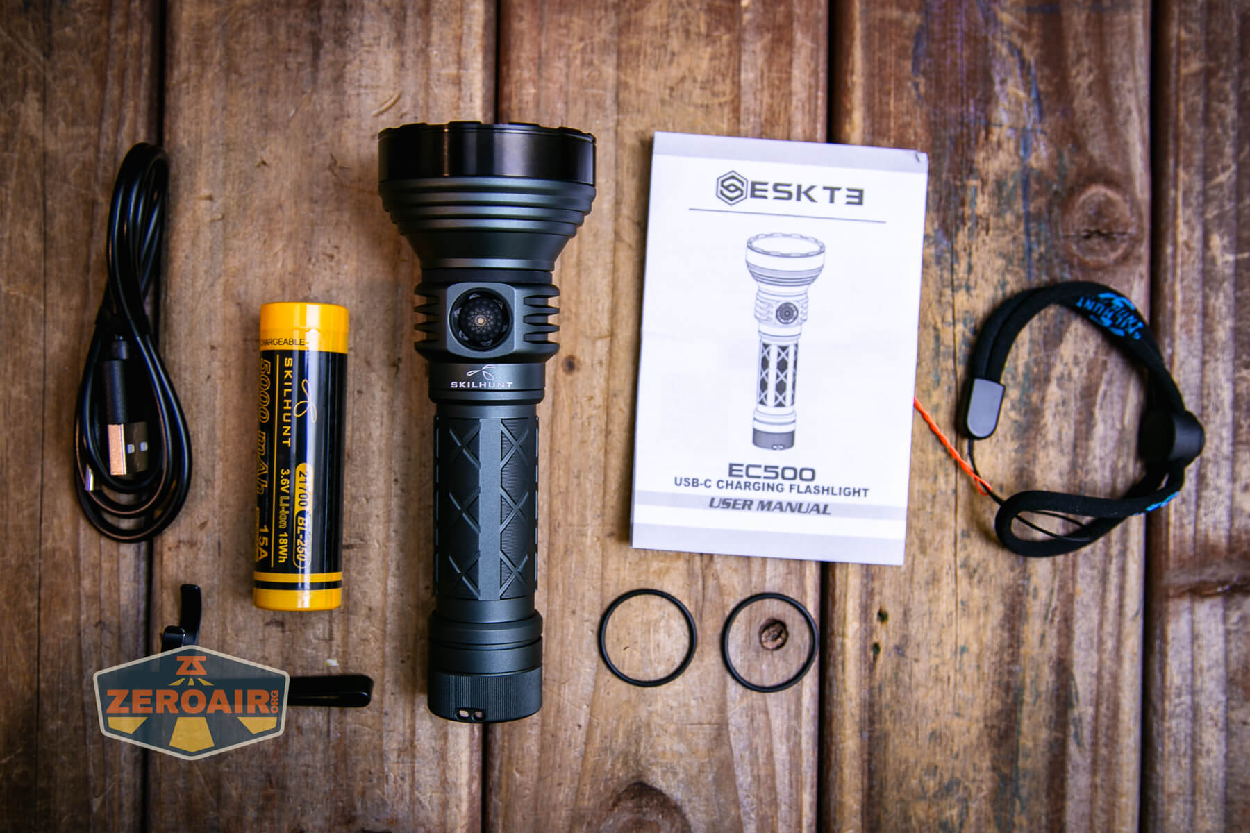 The Skilhunt EC500 warm white flashlight does function as a powerbank, too! I have not yet tested this feature, but it’s great that this USB-C port does output. With the 5000mAh 21700, you should be able to get at least emergency-level charge to phones.