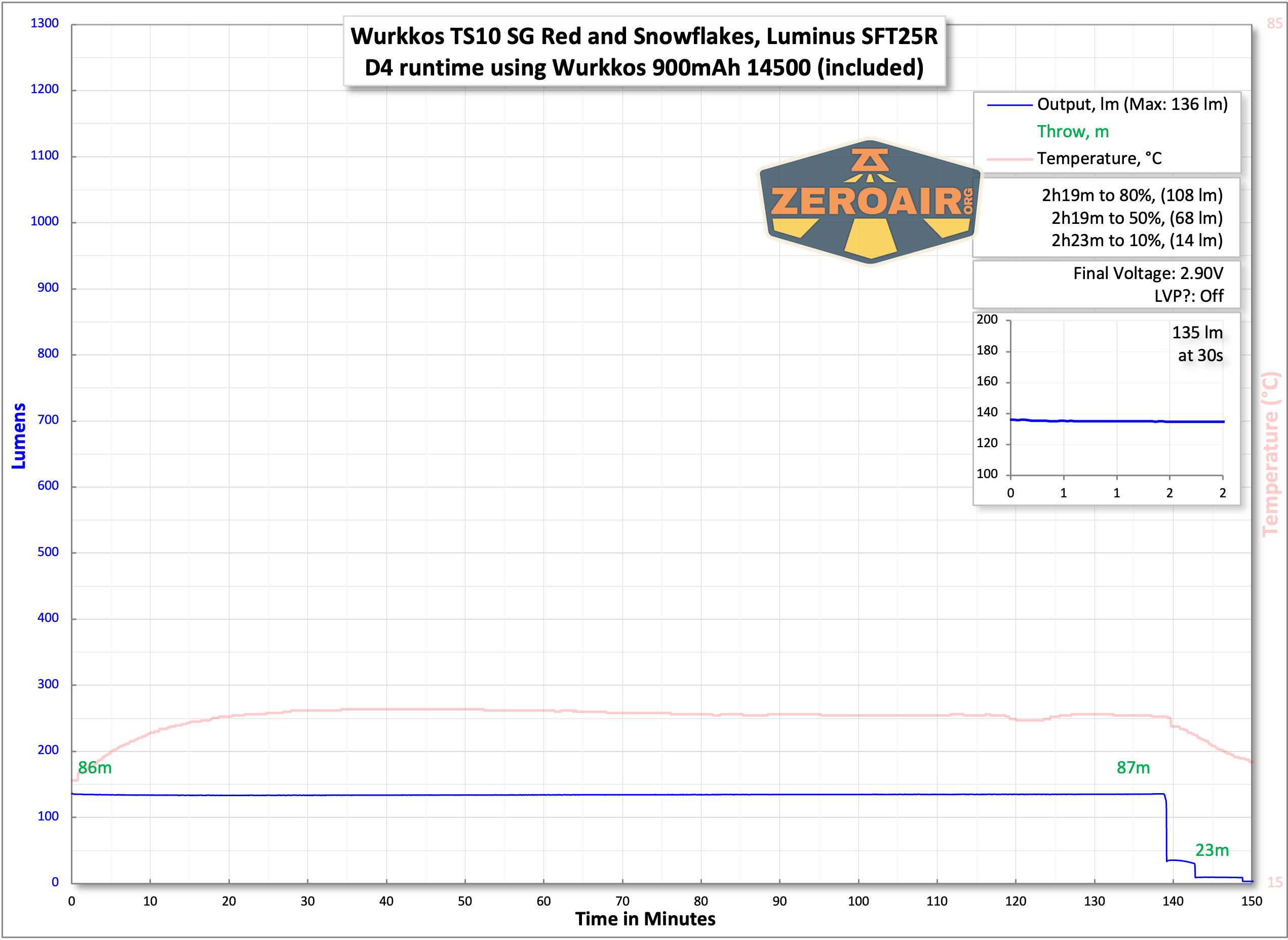 ^ Measurement disclaimer: Testing flashlights is my hobby. I use hobbyist-level equipment for testing, including some I made myself. Try not to get buried in the details of manufacturer specifications versus measurements recorded here; A certain amount of difference (say, 10 or 15%) is perfectly reasonable.