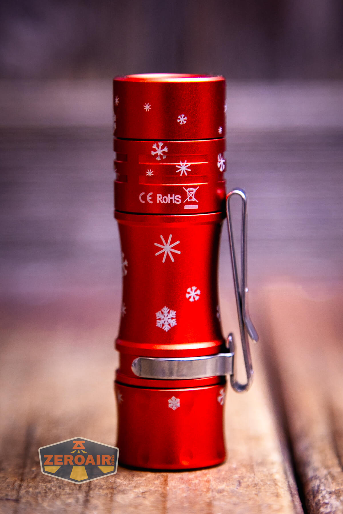 Second to the emitter difference is the red and snowflake body – very Christmasy! I enjoy seasonal products, and this is no exception. The Snowflake design is great!