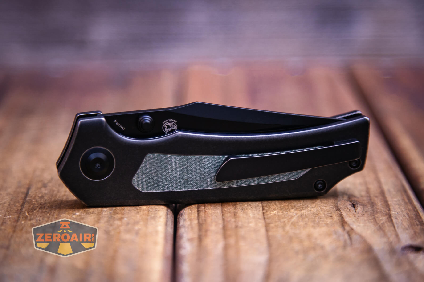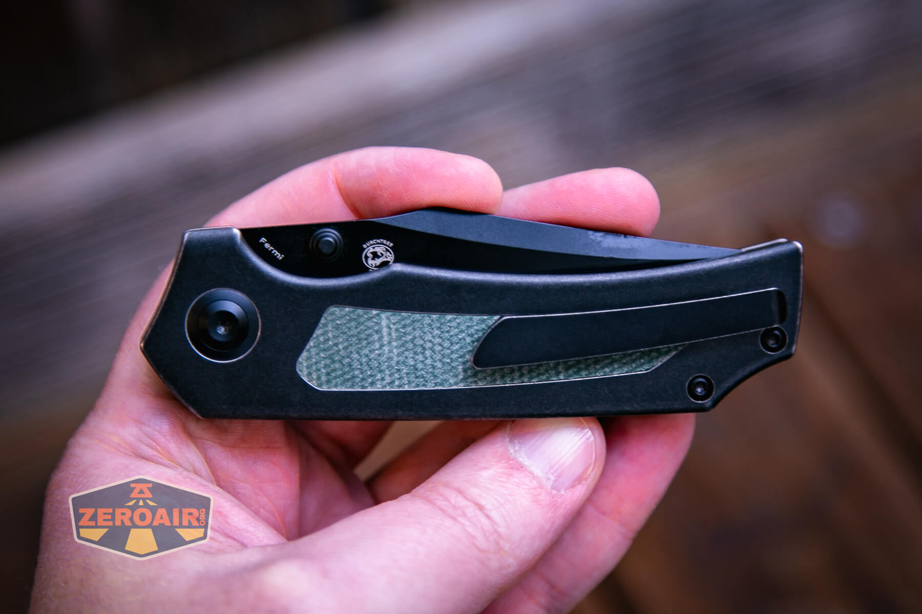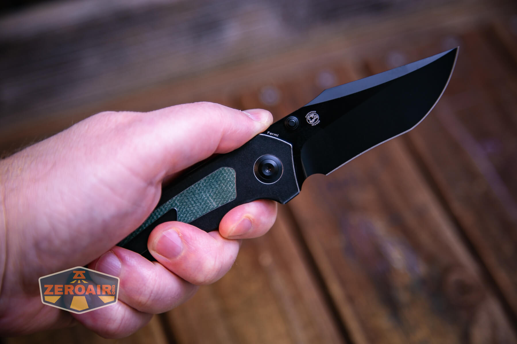This version of the Kansept Fermi knife features a black titanium body and green Micarta inlays. Flinging open the thick blade is its own reward! Read on!