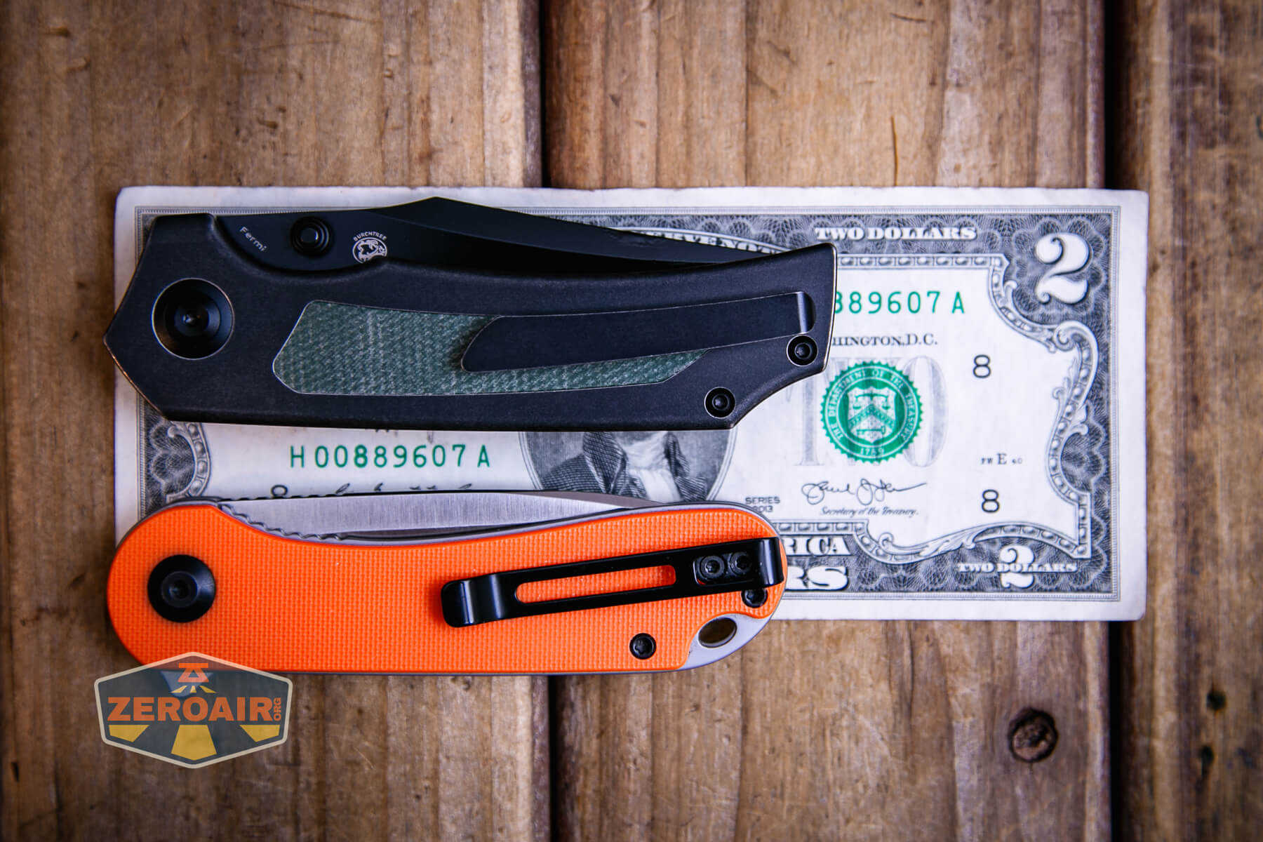 Above you can see the Kansept Fermi knife with the Civivi Elementum in orange G10. I use that knife so much!