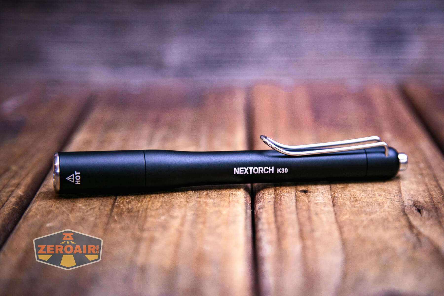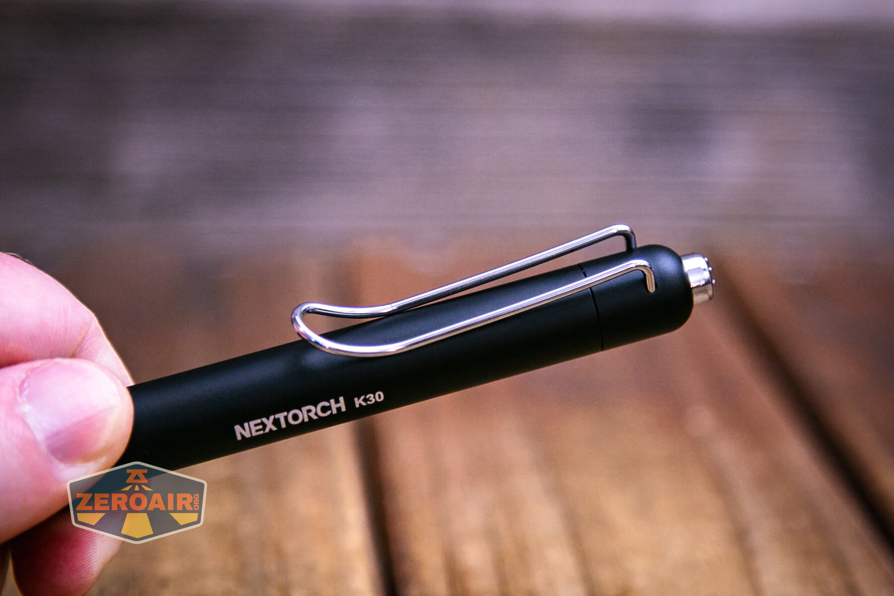 The Nextorch K30 penlight has a “friendly” pocket clip. It’s actually surprisingly grippy, probably due to how much curve there is in the material when the light is pocketed.