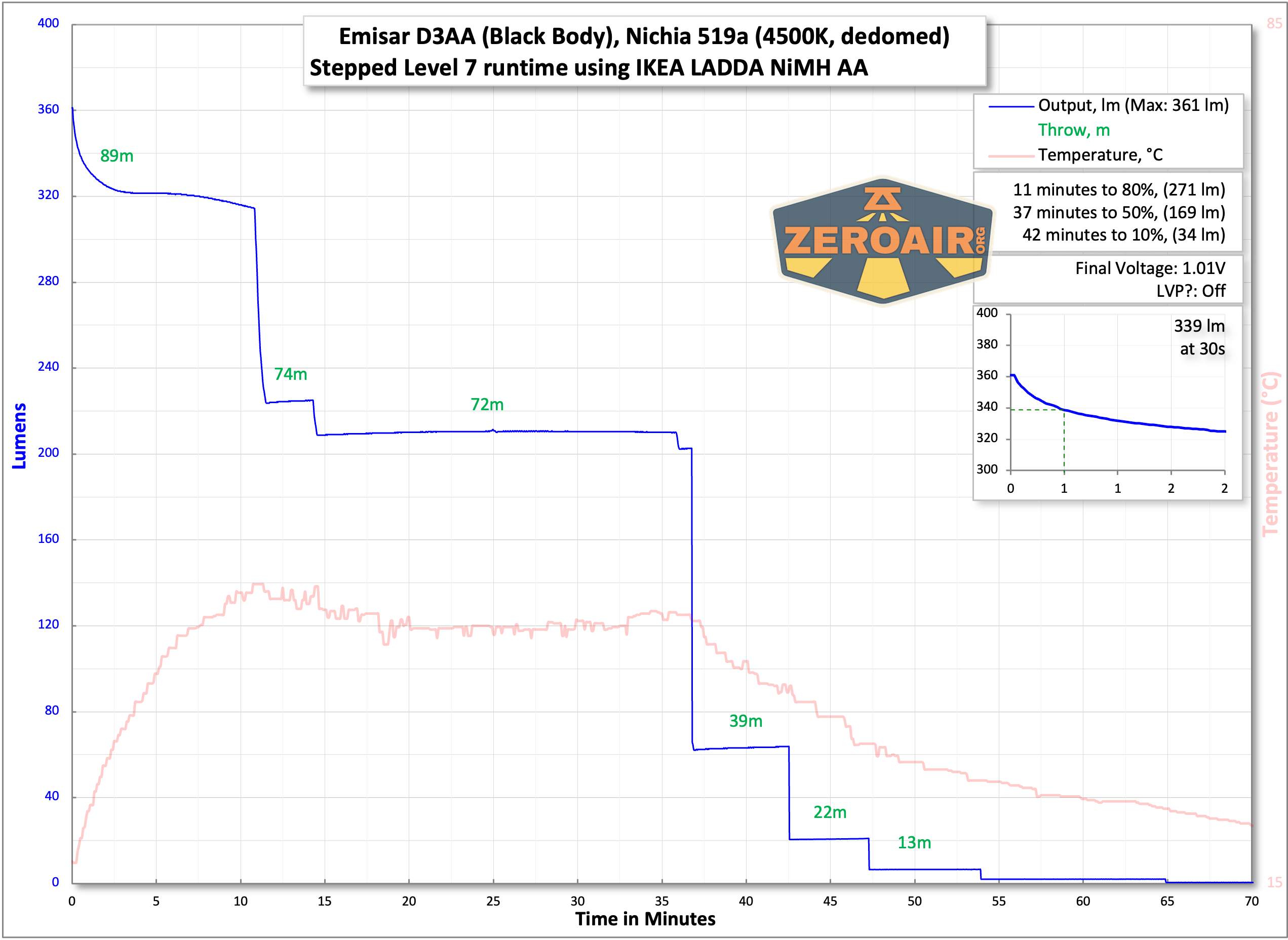 | NiMH AA Level 7 – Stepped | – | – | 361 (0s) 339 (30s) |
