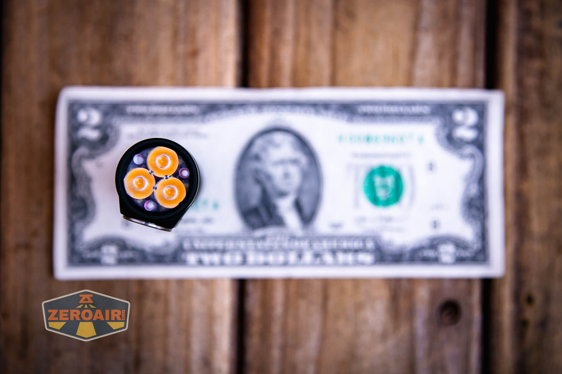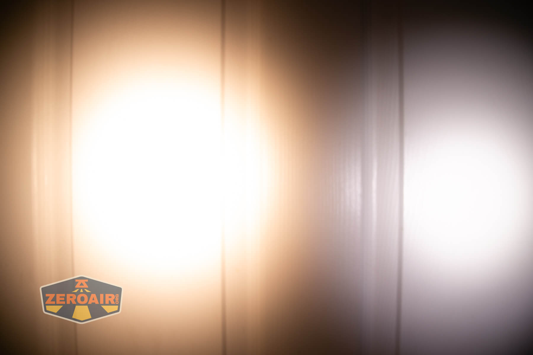 In the photo above, you may note that the SRM (standard reference material) flashlight for comparison has changed! I used a TorchLAB BOSS 35 for ages. Now what you can see as the 18350 SRM is the Hanko Machine Works Trident. While I have not reviewed or tested the Gunner Grip version seen here, I have tested a Hanko Machine Works Trident Total Tesseract in brass. I love the Trident, and it’s a nice juxtaposition beside the inexpensive Convoy S2+, which I also love to use as an SRM.