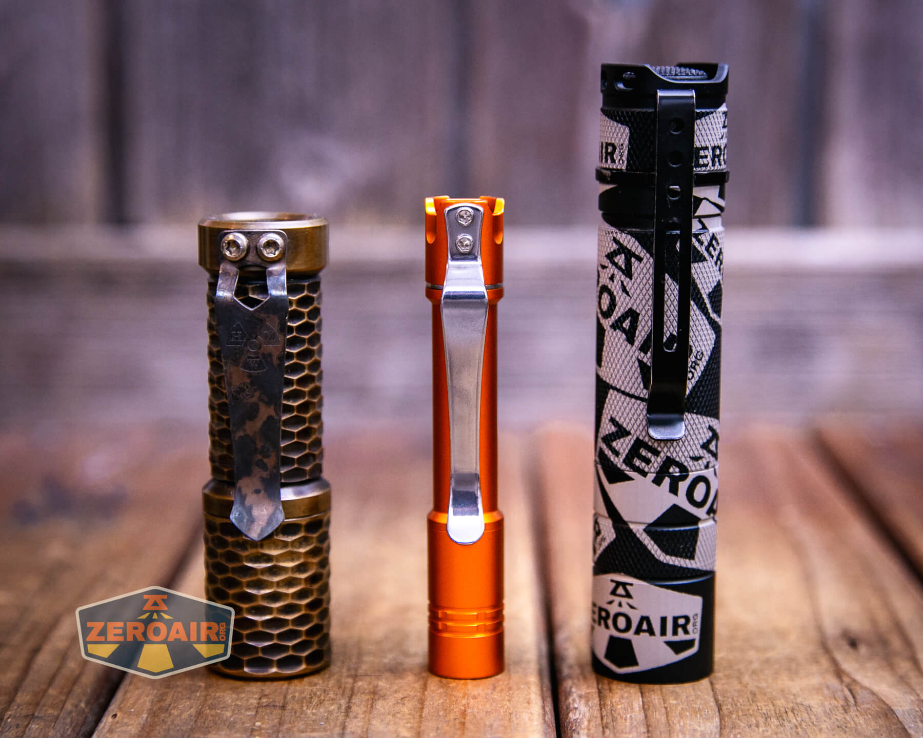In the photo above, you may note that the SRM (standard reference material) flashlight for comparison has changed! I used a TorchLAB BOSS 35 for ages. Now what you can see as the 18350 SRM is the Hanko Machine Works Trident. While I have not reviewed or tested the Gunner Grip version seen here, I have tested a Hanko Machine Works Trident Total Tesseract in brass. I love the Trident, and it’s a striking contrast next to the inexpensive Convoy S2+, which also makes a great standard reference material.