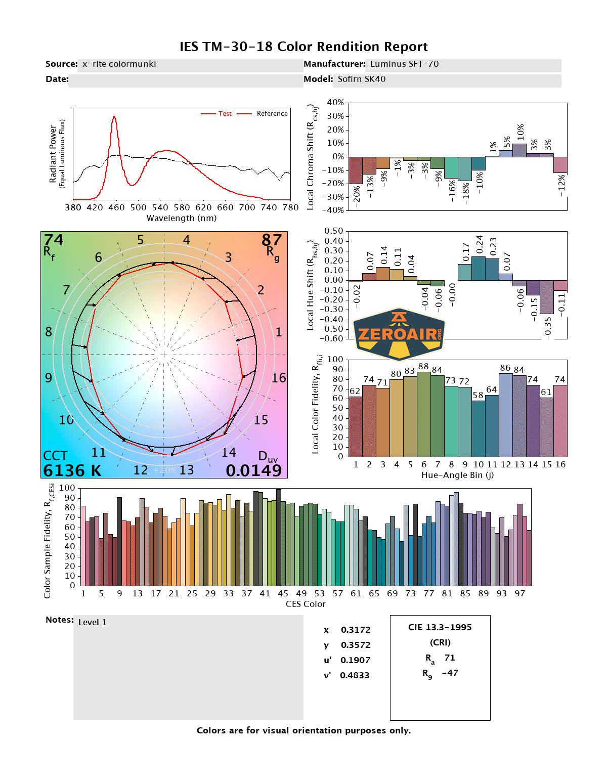 LED Color Report (CRI and CCT)