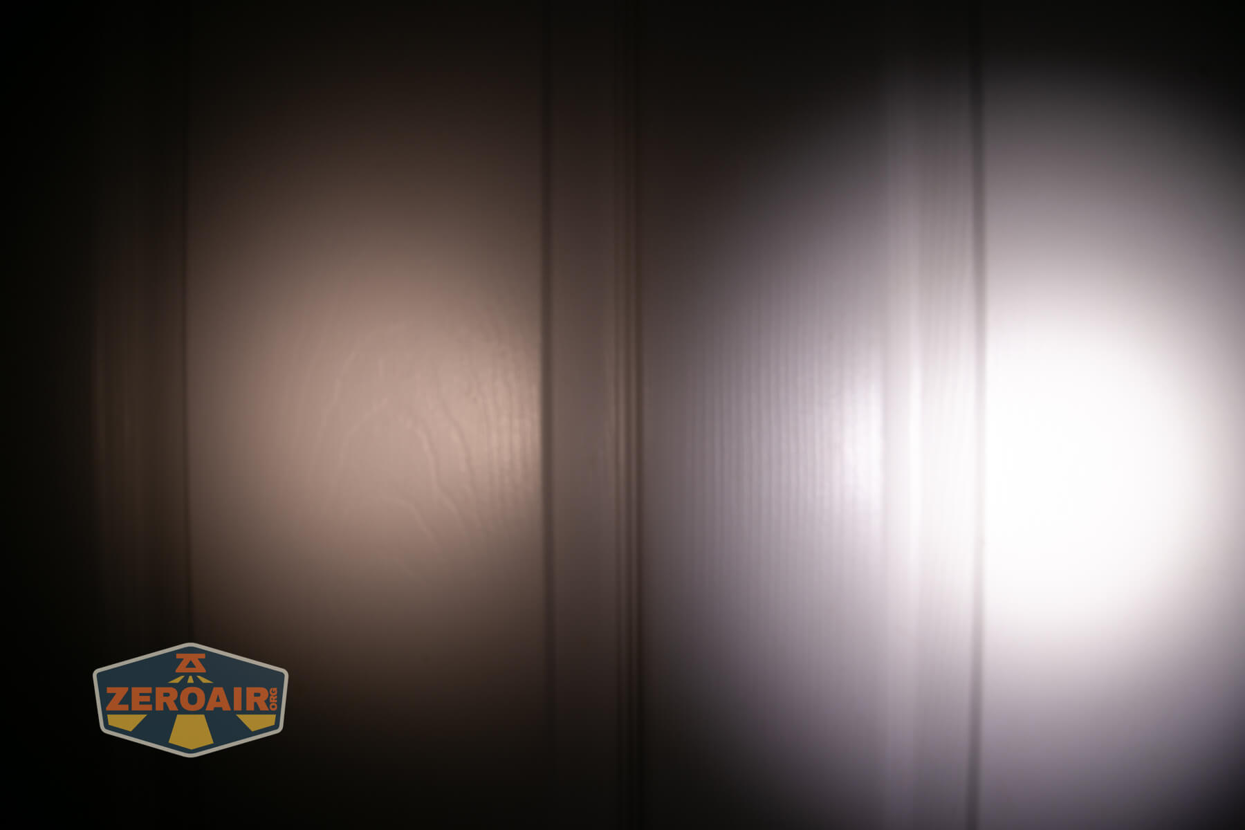 In the photo above, you may note that the SRM (standard reference material) flashlight for comparison has changed! I used a TorchLAB BOSS 35 for ages. Now what you can see as the 18350 SRM is the Hanko Machine Works Trident. While I have not reviewed or tested the Gunner Grip version seen here, I have tested a Hanko Machine Works Trident Total Tesseract in brass. I love the Trident, and it’s a striking contrast next to the inexpensive Convoy S2+, which also makes a great standard reference material.