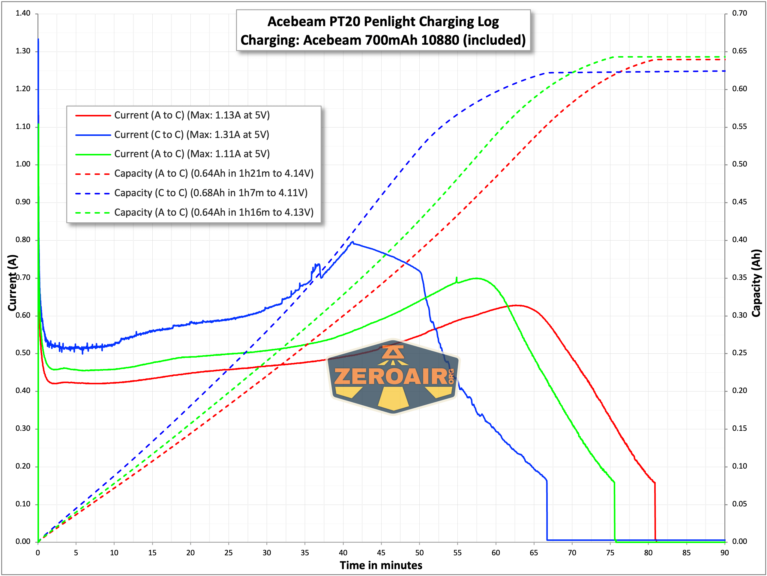 Here are a few charging cycles. Charging is acceptable, and finishes in just over an hour.