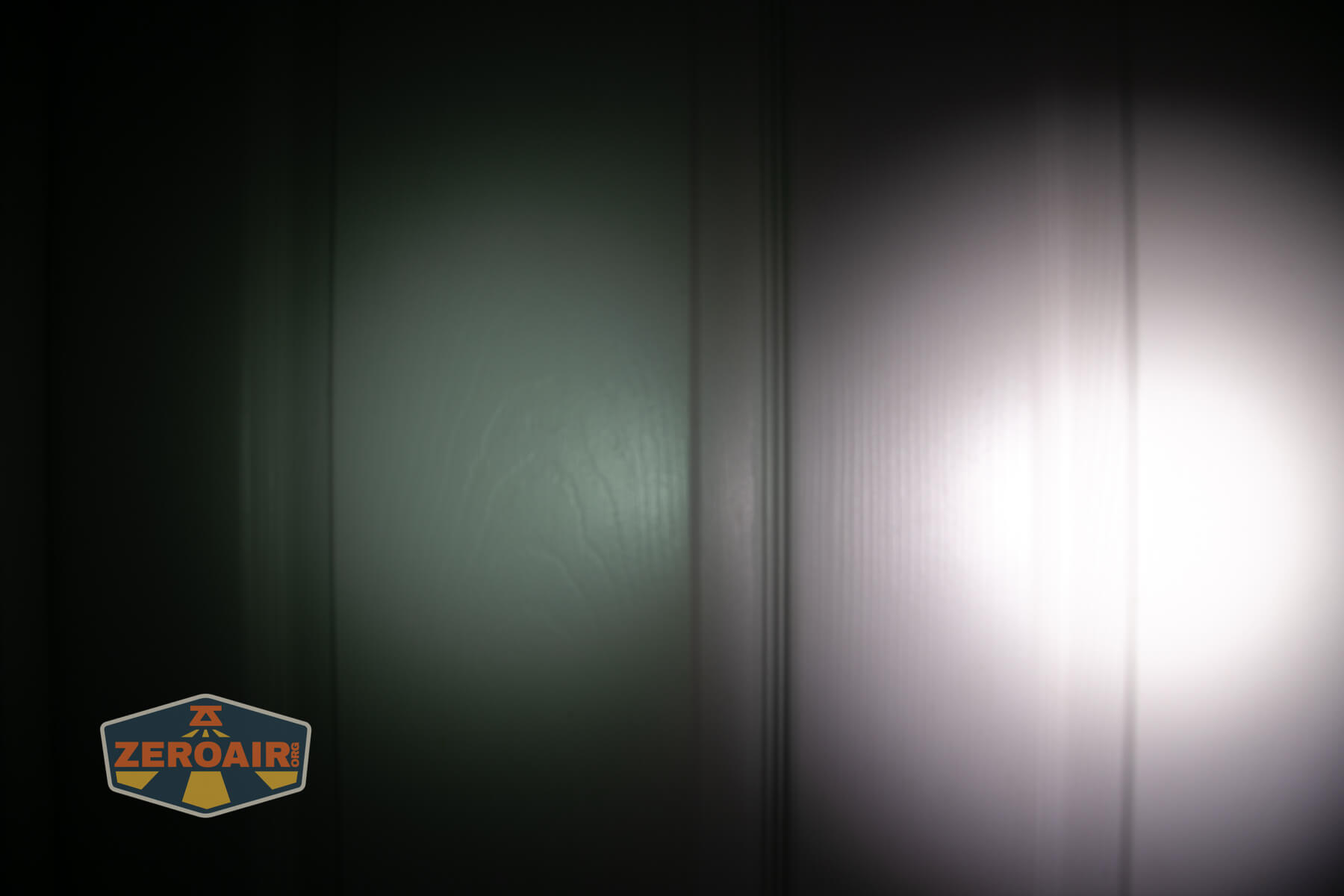I keep the test flashlight on the left and the BLF-348 reference flashlight on the right. These photos are taken around 18 inches from the door.