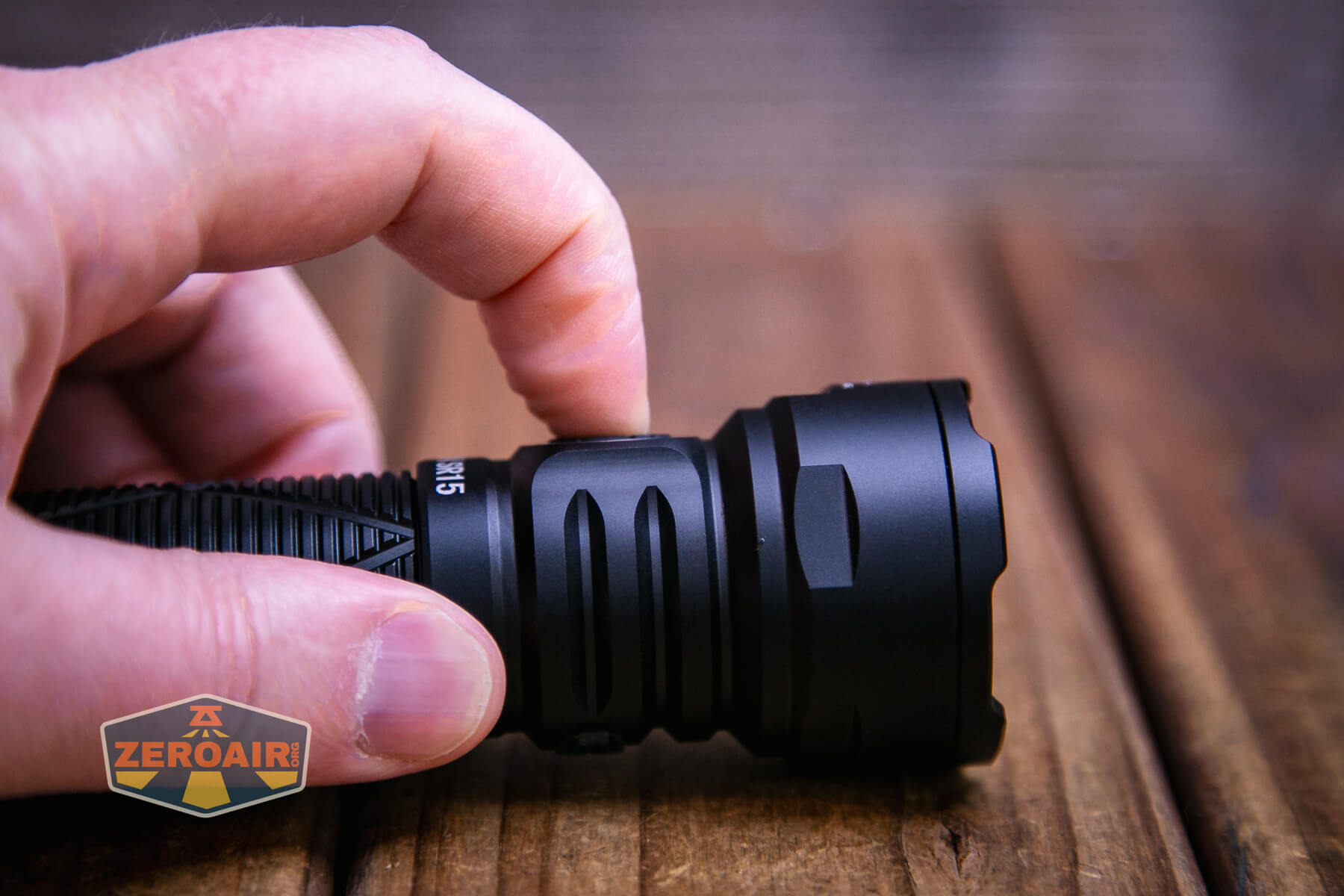 The Sofirn SR15 rechargeable flashlight is controlled by a single indicating e-switch.