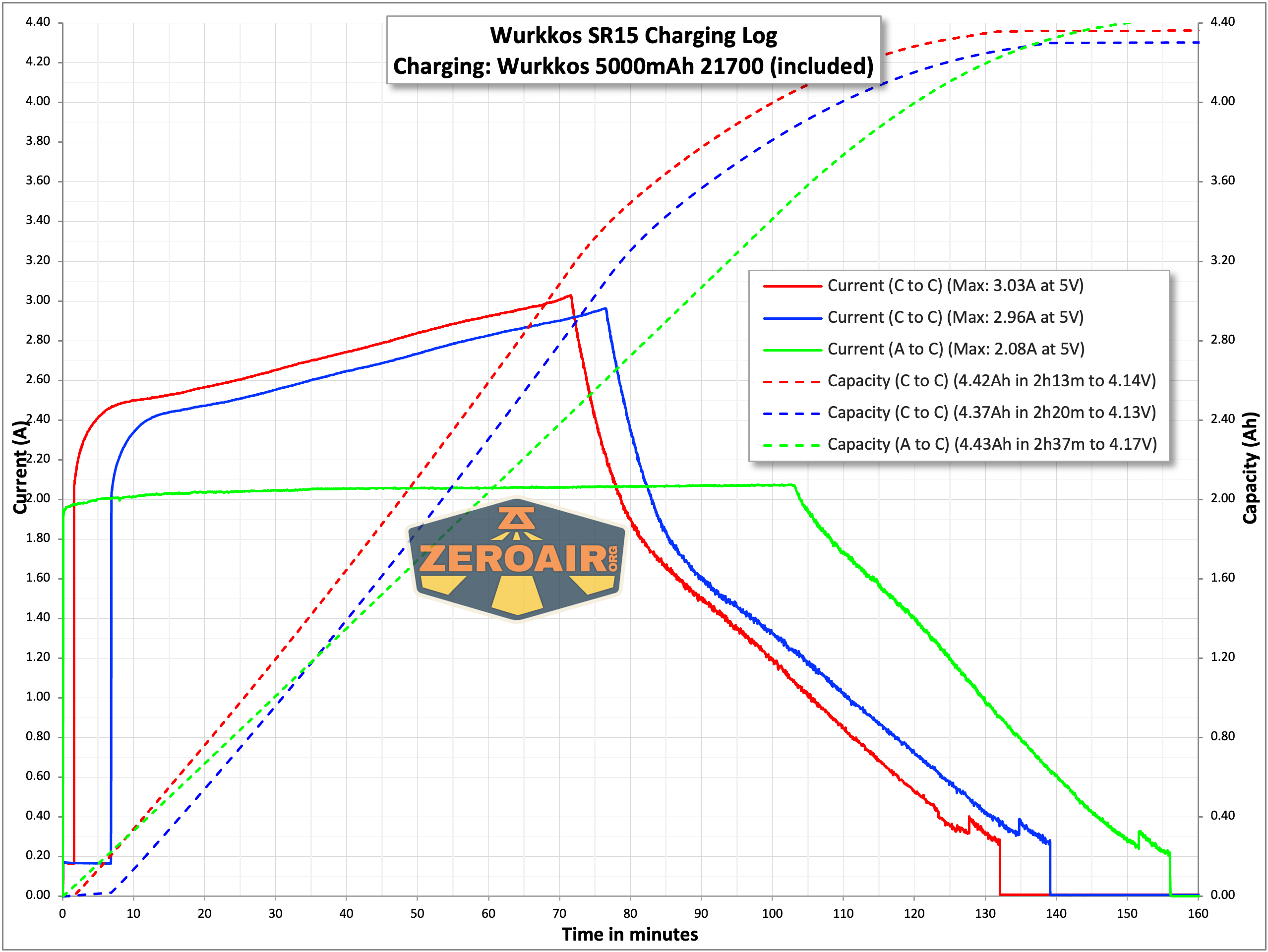 Below you can see a C to C and A to C charging test. They’re both fine – but C to C seems markedly faster, charging at over 3A at points during the cycle. A to C maxed at 2A.