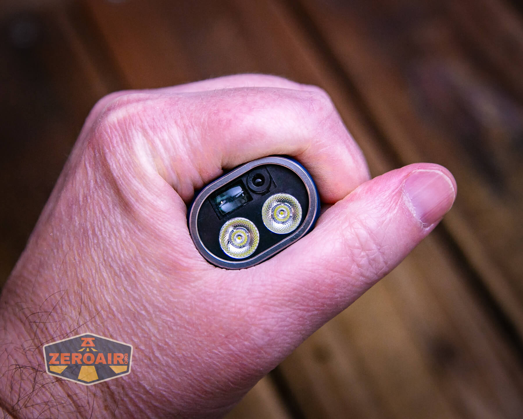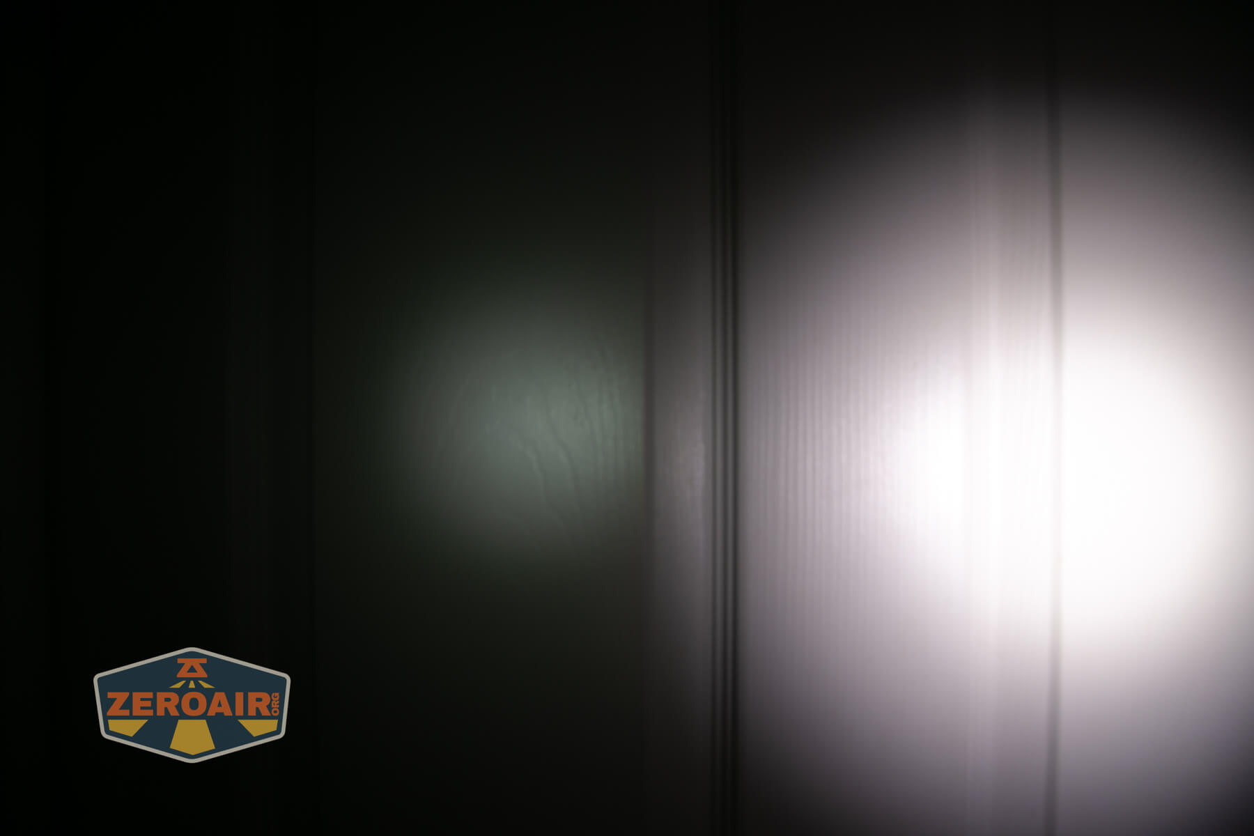 In the photo above, you may note that the SRM (standard reference material) flashlight for comparison has changed! I used a TorchLAB BOSS 35 for ages. Now, what you can see as the 18350 SRM is the Hanko Machine Works Trident. While I have not reviewed or tested the Gunner Grip version seen here, I have tested a Hanko Machine Works Trident Total Tesseract in brass. I love the Trident, and it’s a striking contrast next to the inexpensive Convoy S2+, which also makes a great standard reference material.