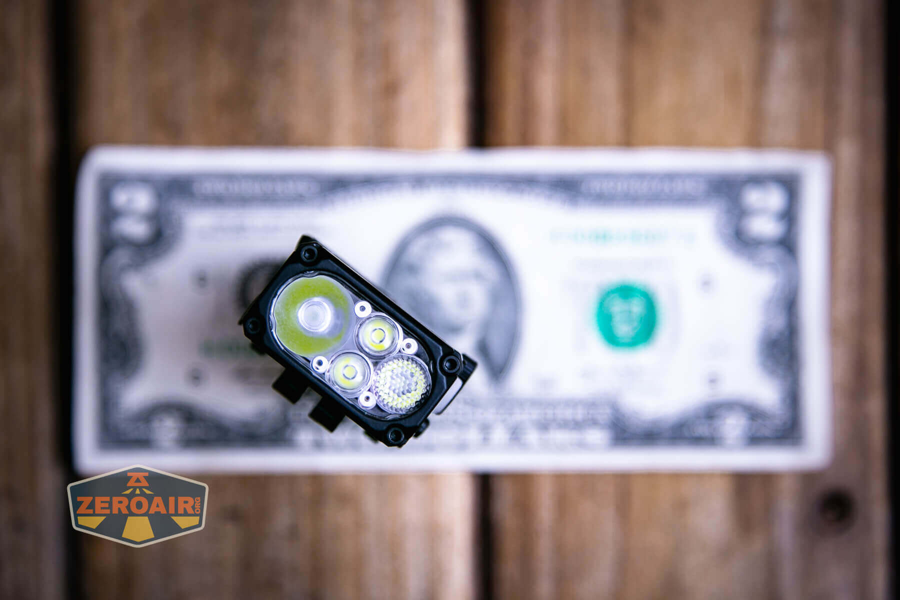 A note on the modes – the manual is a bit confusing about it all and I’ve done the best I can do to test the levels. The manual covers three steady modes for the front light. But the front light is made up of four emitters. Those four emitters simply make up the output levels, and are not individually addressable (sort of).