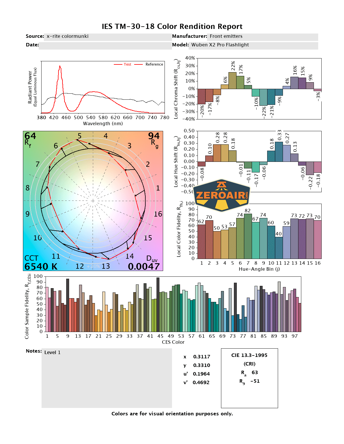 ^ Measurement disclaimer: Testing flashlights is my hobby. I use hobbyist-level equipment for testing, including some I made myself. Try not to get buried in the details of manufacturer specifications versus measurements recorded here; A certain amount of difference (say, 10 or 15%) is perfectly reasonable.