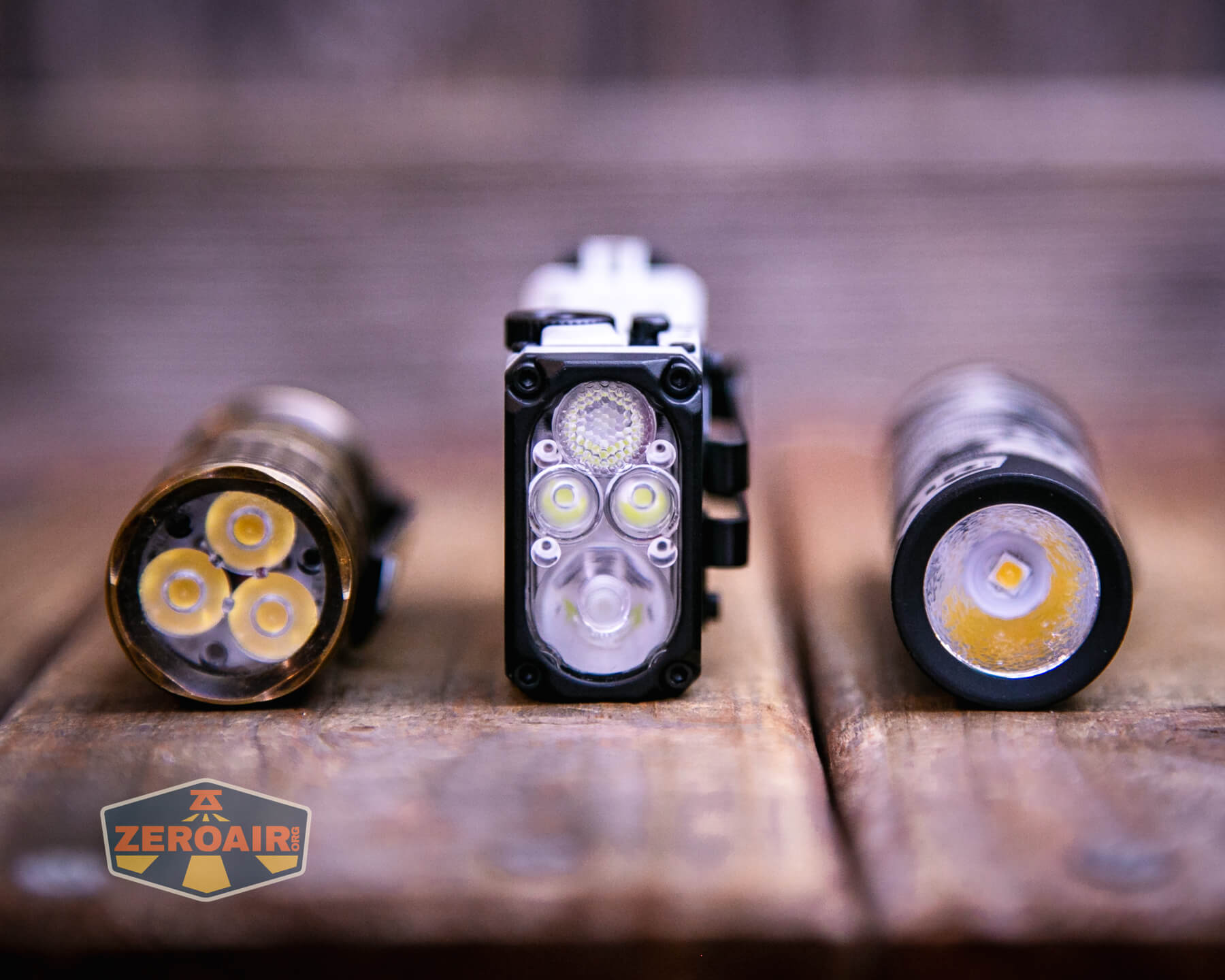 In the photo above, you may note that the SRM (standard reference material) flashlight for comparison has changed! I used a TorchLAB BOSS 35 for ages. Now what you can see as the 18350 SRM is the Hanko Machine Works Trident. While I have not reviewed or tested the Gunner Grip version seen here, I have tested a Hanko Machine Works Trident Total Tesseract in brass. I love the Trident, and it’s a striking contrast next to the inexpensive Convoy S2+, which also makes a great standard reference material.