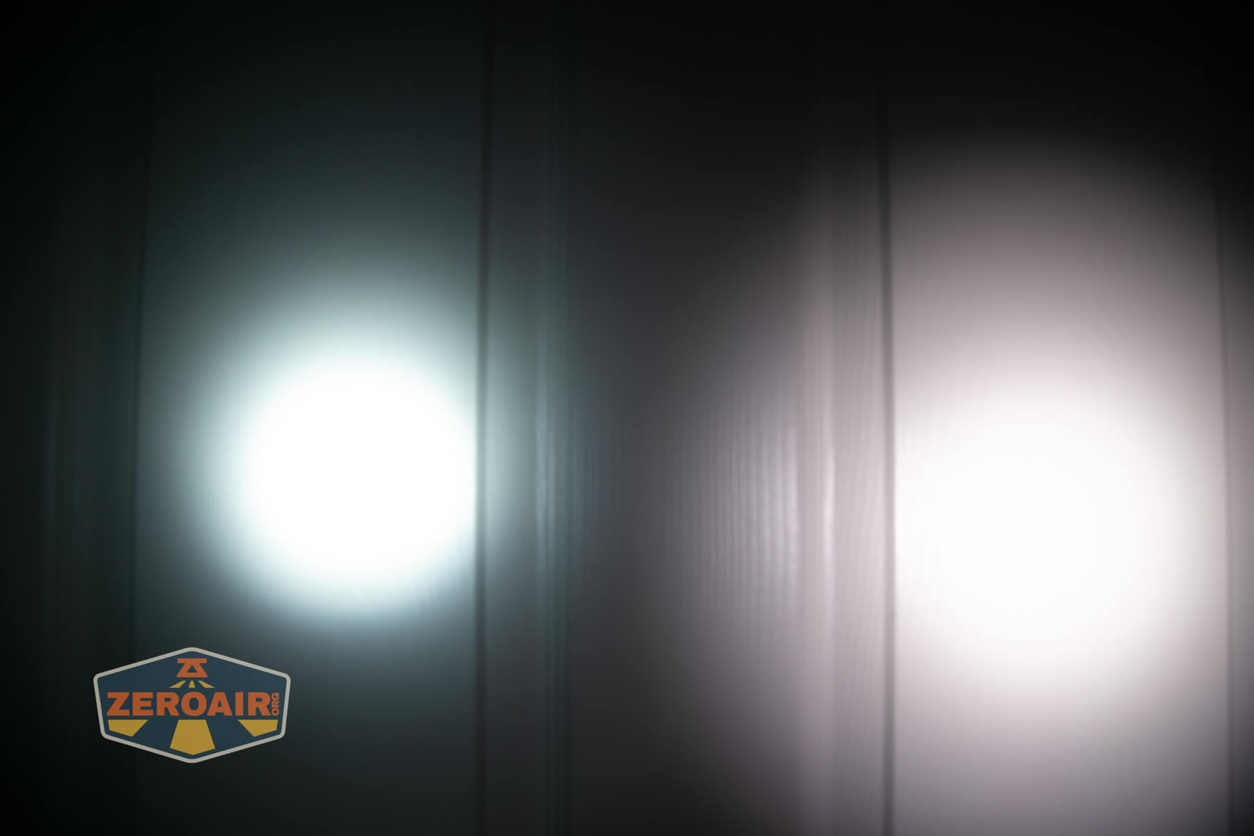 In the photo above, you may note that the SRM (standard reference material) flashlight for comparison has changed! I used a TorchLAB BOSS 35 for ages. Now, what you can see as the 18350 SRM is the Hanko Machine Works Trident. While I have not reviewed or tested the Gunner Grip version seen here, I have tested a Hanko Machine Works Trident Total Tesseract in brass. I love the Trident, and it’s a striking contrast next to the inexpensive Convoy S2+, which also makes a great standard reference material.