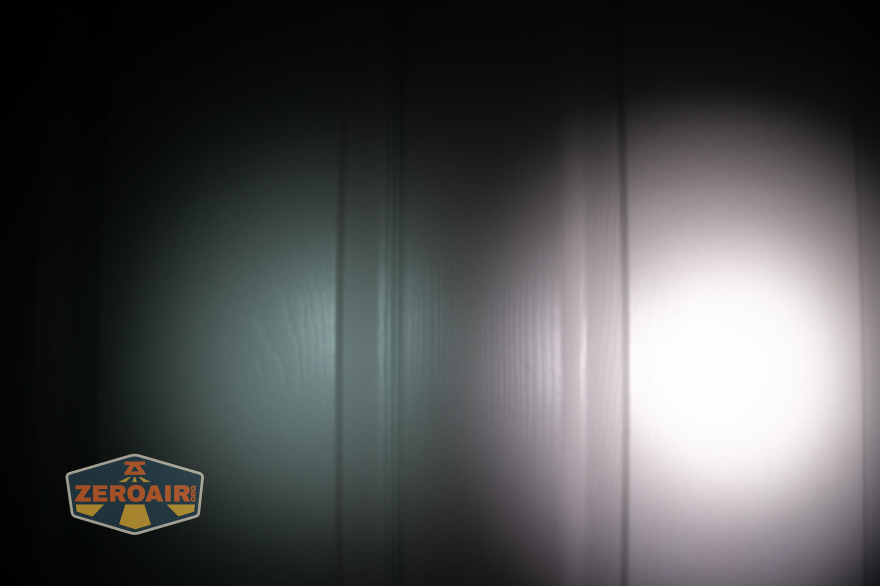 I keep the test flashlight on the left and the BLF-348 reference flashlight on the right. These photos are taken around 18 inches from the door.