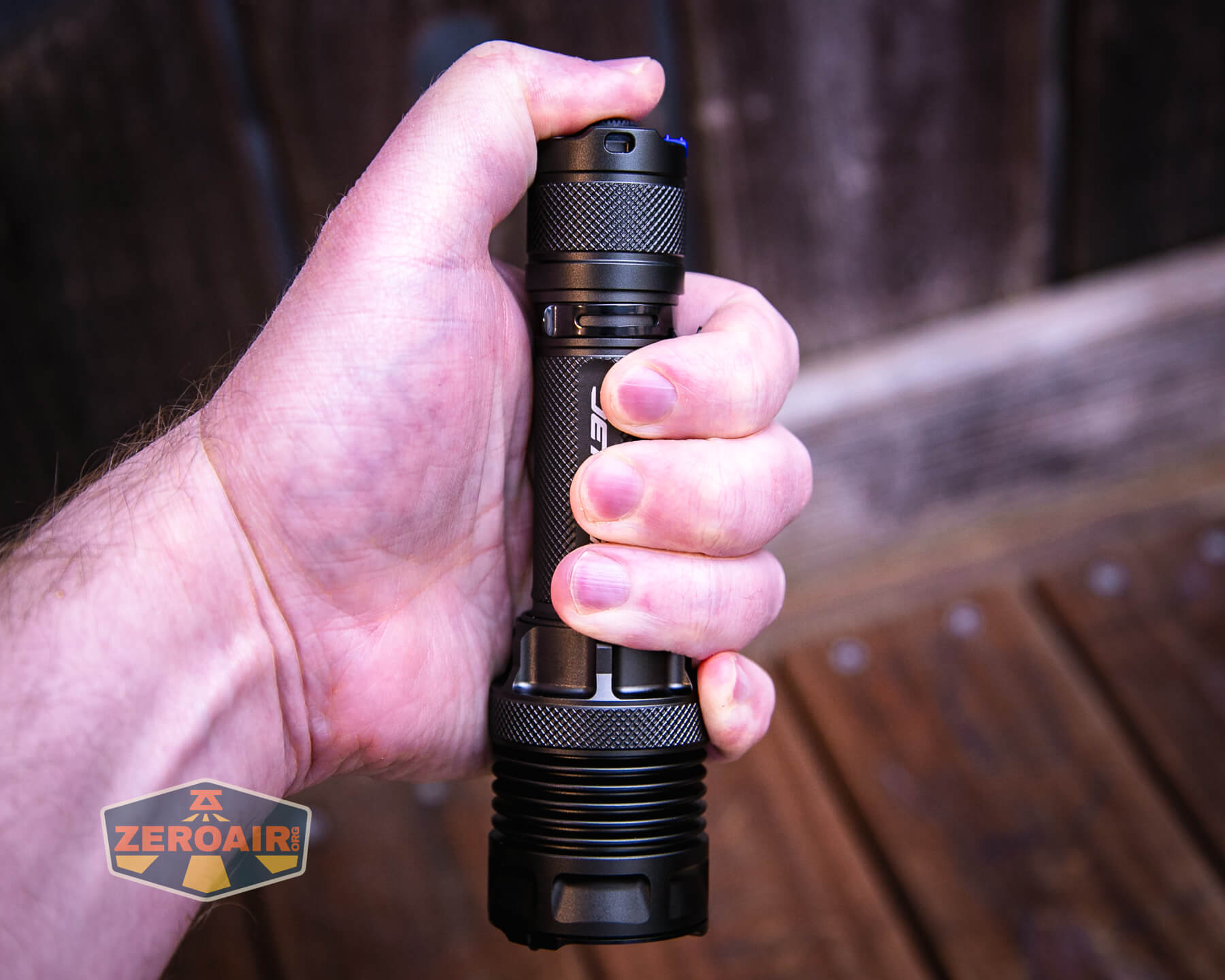 JETBeam includes a pocket clip on the M37 Max tactical flashlight. This is surprisingly a friction-fit pocket clip, a bit of a downgrade from the collar-style on previous M37 versions.