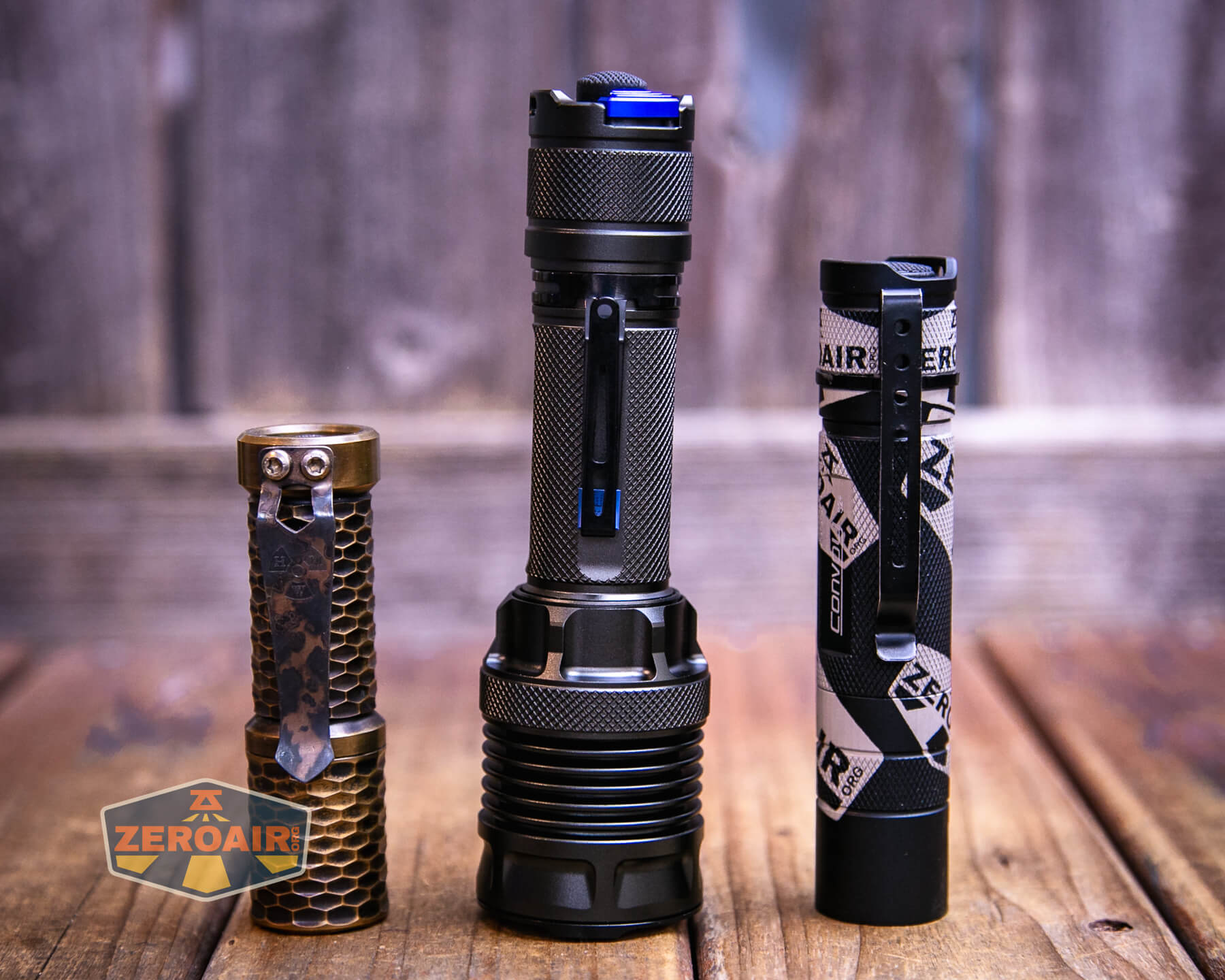 In the photo above, you may note that the SRM (standard reference material) flashlight for comparison has changed! I used a TorchLAB BOSS 35 for ages. Now what you can see as the 18350 SRM is the Hanko Machine Works Trident. While I have not reviewed or tested the Gunner Grip version seen here, I have tested a Hanko Machine Works Trident Total Tesseract in brass. I love the Trident, and it’s a striking contrast next to the inexpensive Convoy S2+, which also makes a great standard reference material.