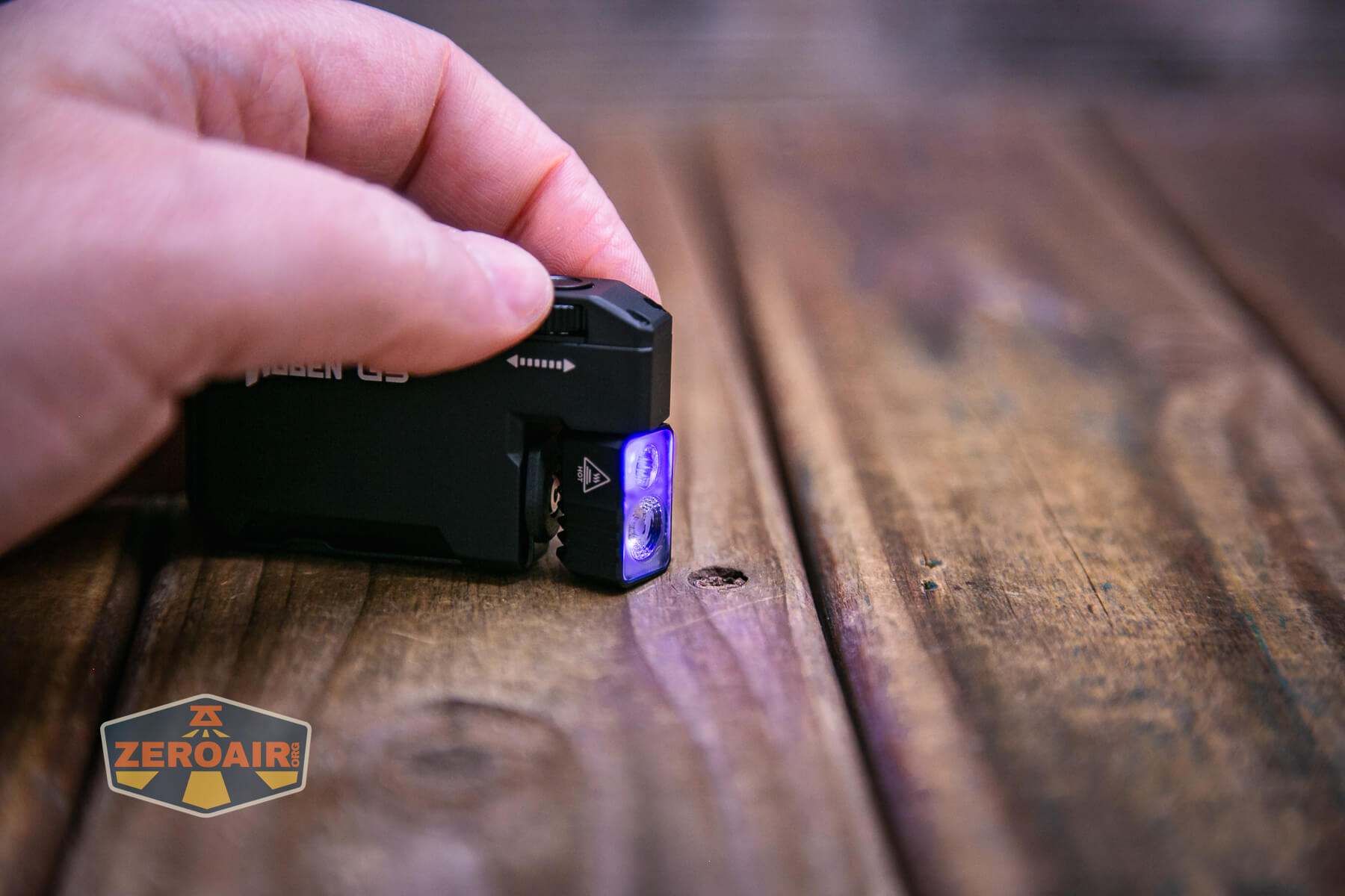 There’s one e-switch for operating the Wuben G5 EDC flashlight. Before you get to that, though, you’ll need the slider switch in the “light” mode. It can be locked (all the way back), LED (middle), or charging (all the way forward.)