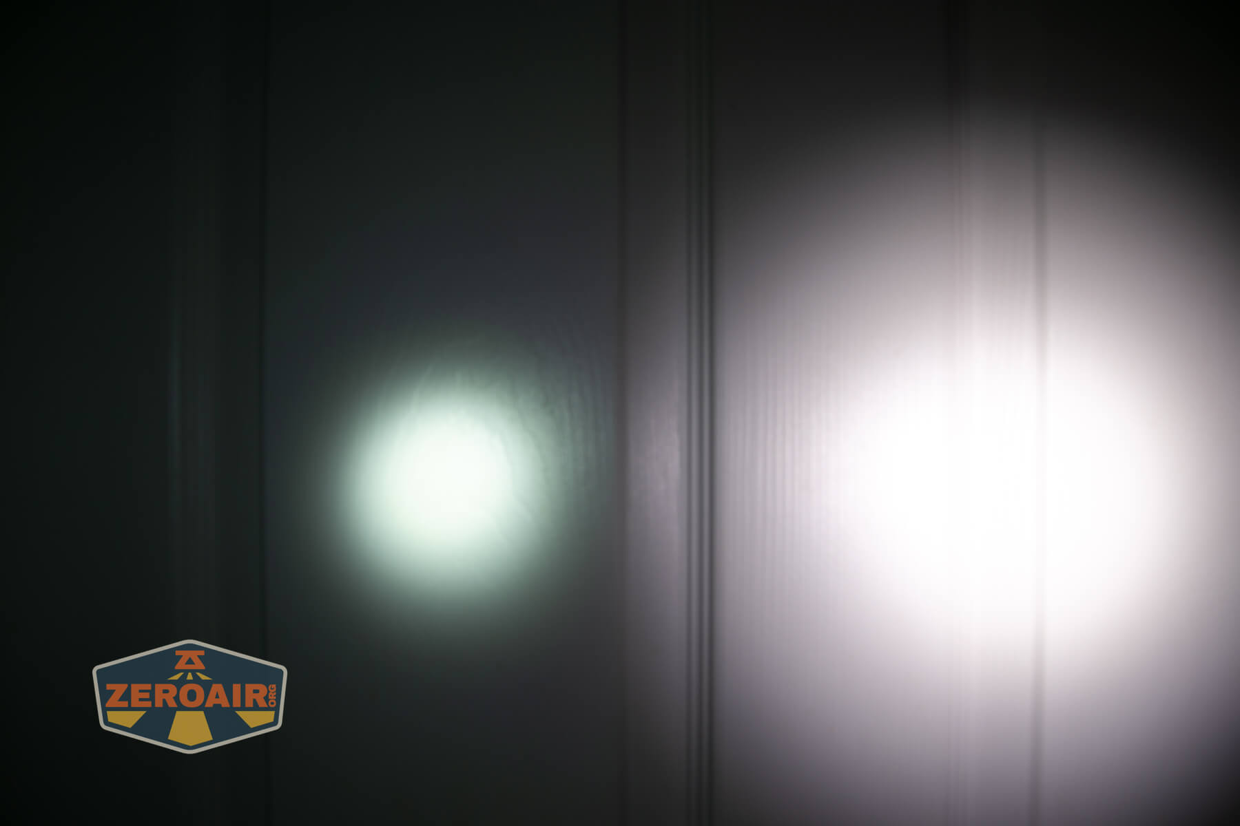 I keep the test flashlight on the left and the BLF-348 reference flashlight on the right. These photos are taken around 18 inches from the door.
