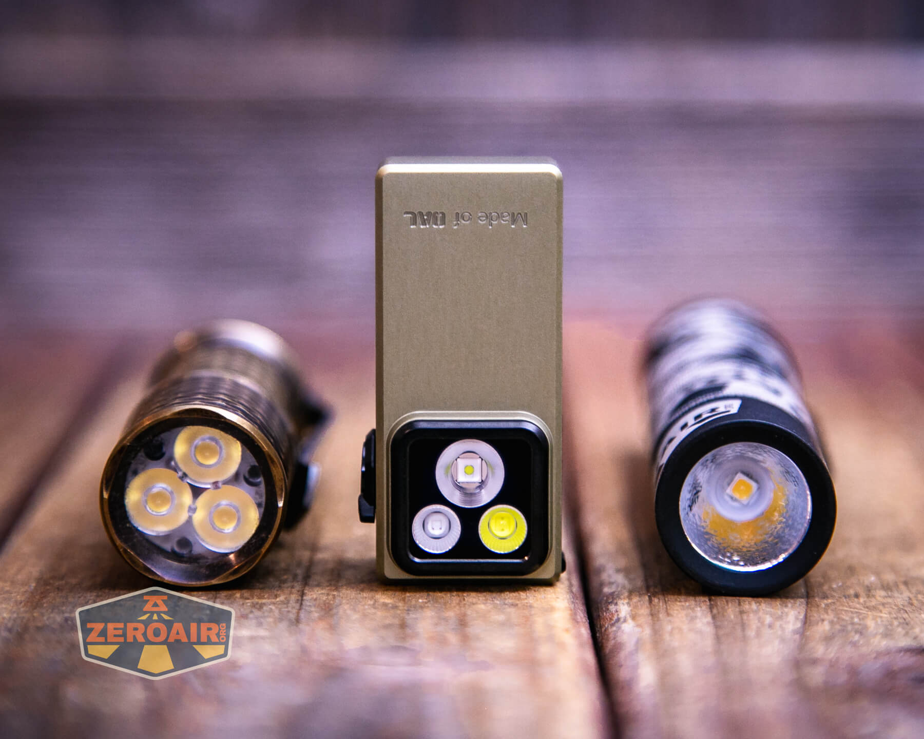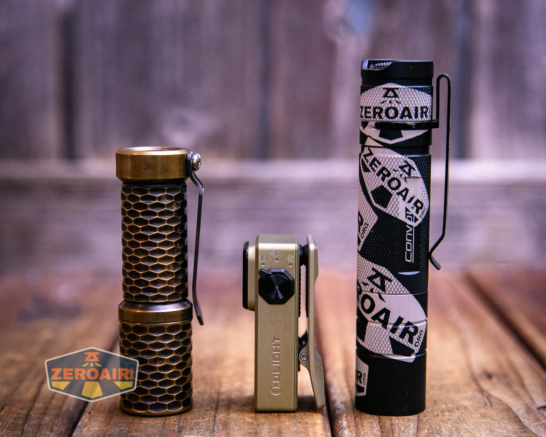In the photo above, you may note that the SRM (standard reference material) flashlight for comparison has changed! I used a TorchLAB BOSS 35 for ages. Now, what you can see as the 18350 SRM is the Hanko Machine Works Trident. While I have not reviewed or tested the Gunner Grip version seen here, I have tested a Hanko Machine Works Trident Total Tesseract in brass. I love the Trident, and it’s a striking contrast next to the inexpensive Convoy S2+, which also makes a great standard reference material.