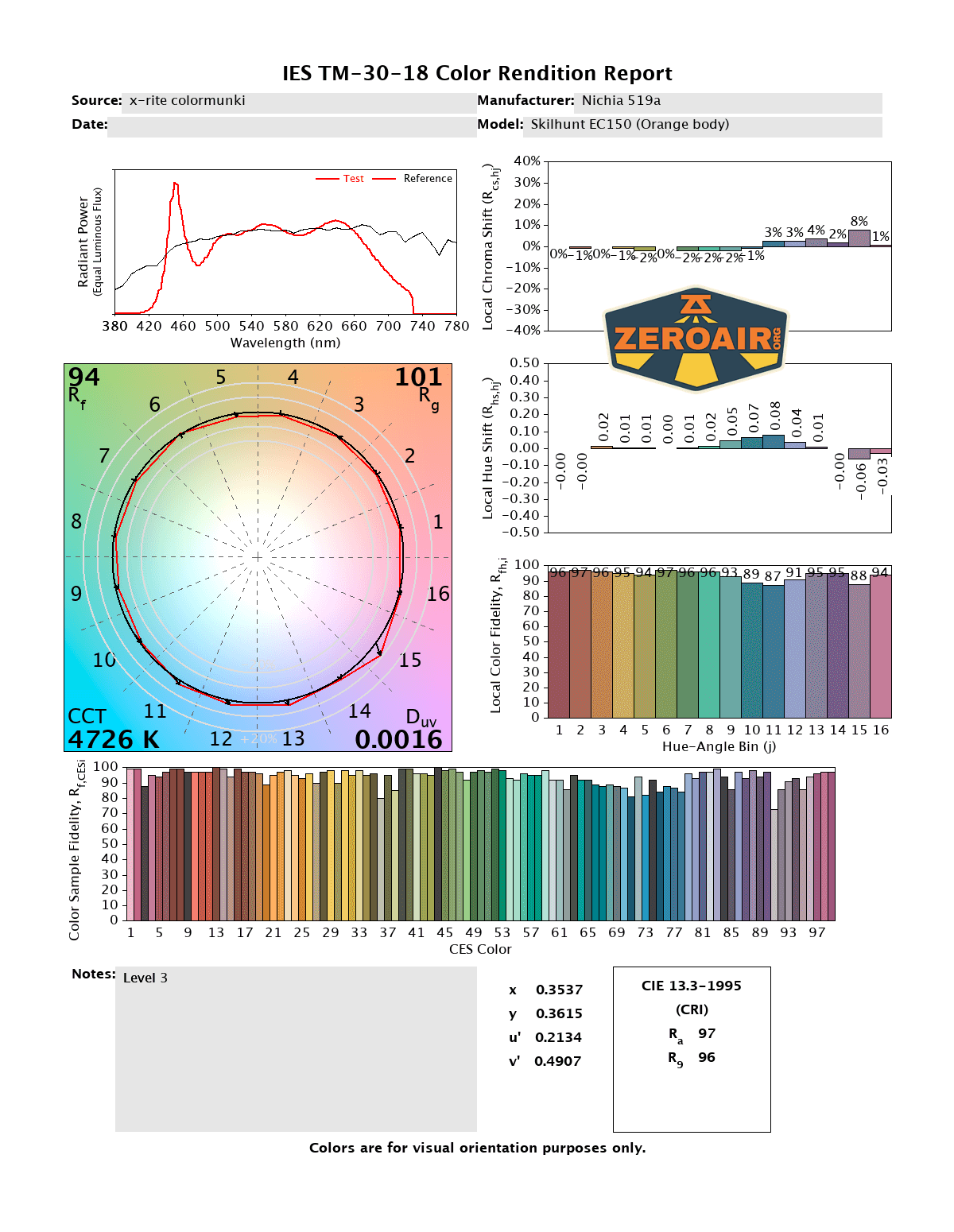 LED Color Report (CRI and CCT)