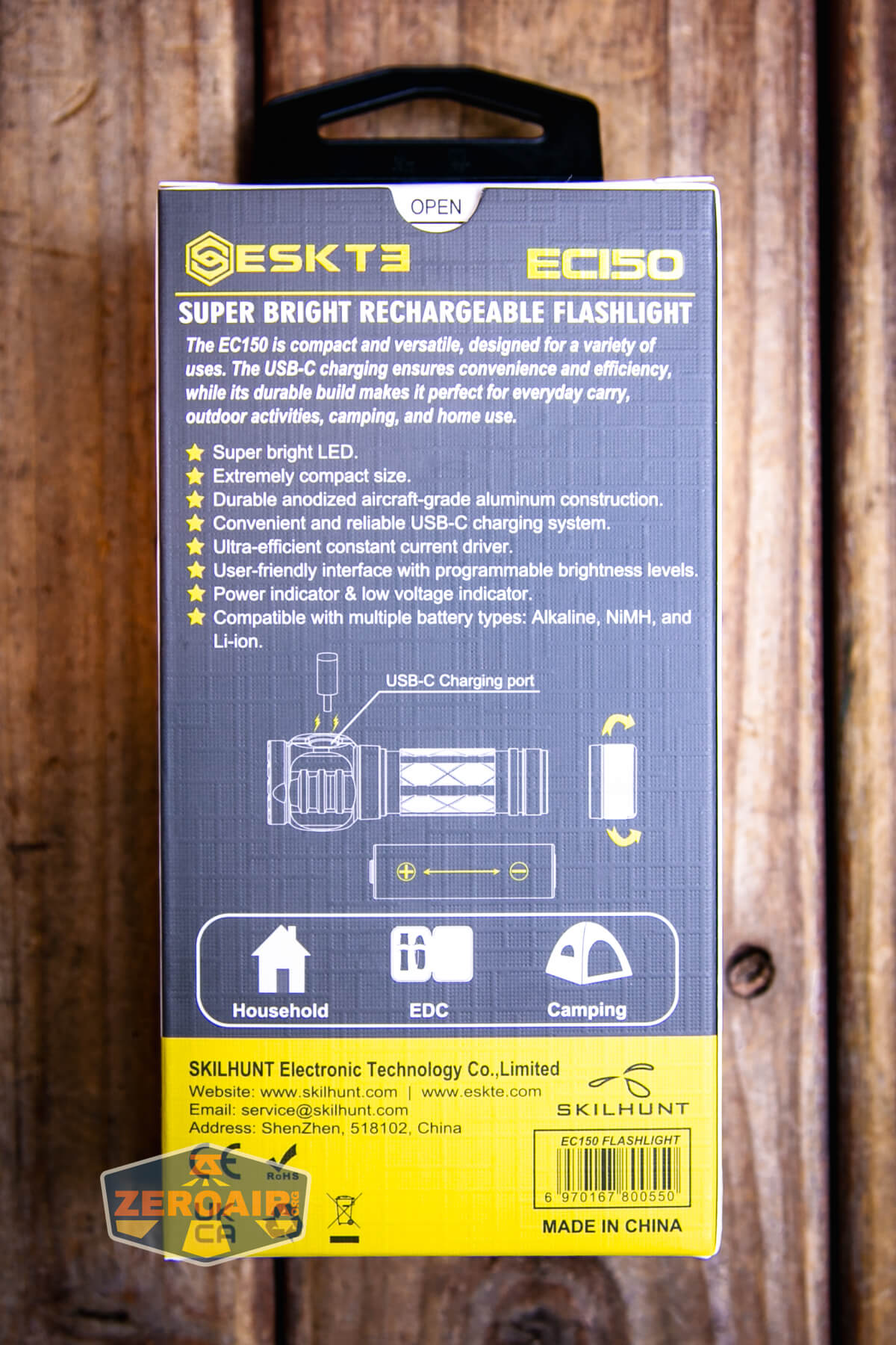 The Skilhunt EC150 Nichia 519a flashlight has built-in charging. One huge bonus here is that charging isn’t Skilhunt’s proprietary magnetic connector, but a standard USB-C port!