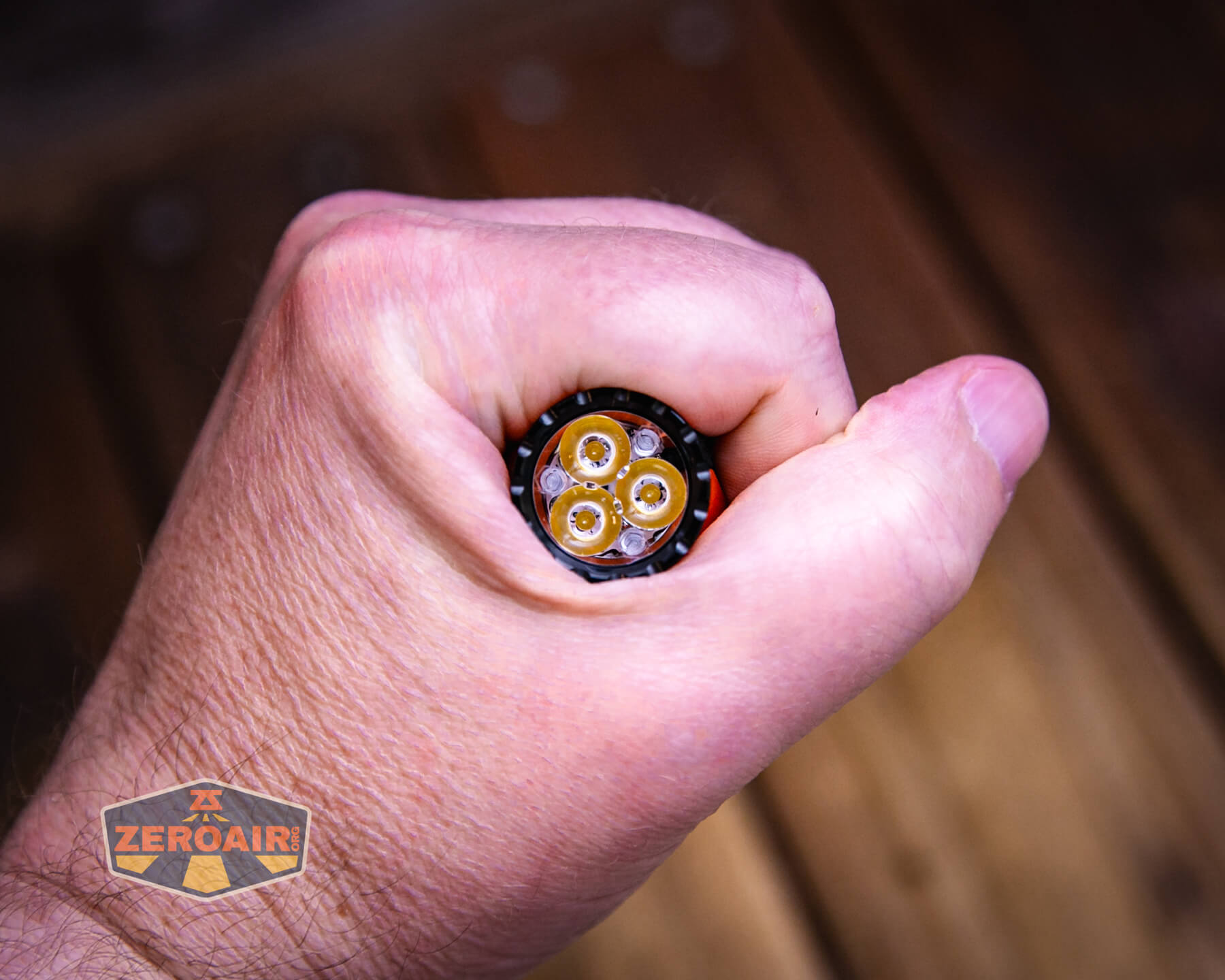Also in the photo above, my Standard Reference Material (SRM) flashlight is the Hanko Machine Works Trident, an 18350 light. While I have not reviewed or tested the Gunner Grip version seen here, I have tested a Hanko Machine Works Trident Total Tesseract in brass. I love the Trident, and it’s a striking contrast to the inexpensive Convoy S2+, another great SRM.