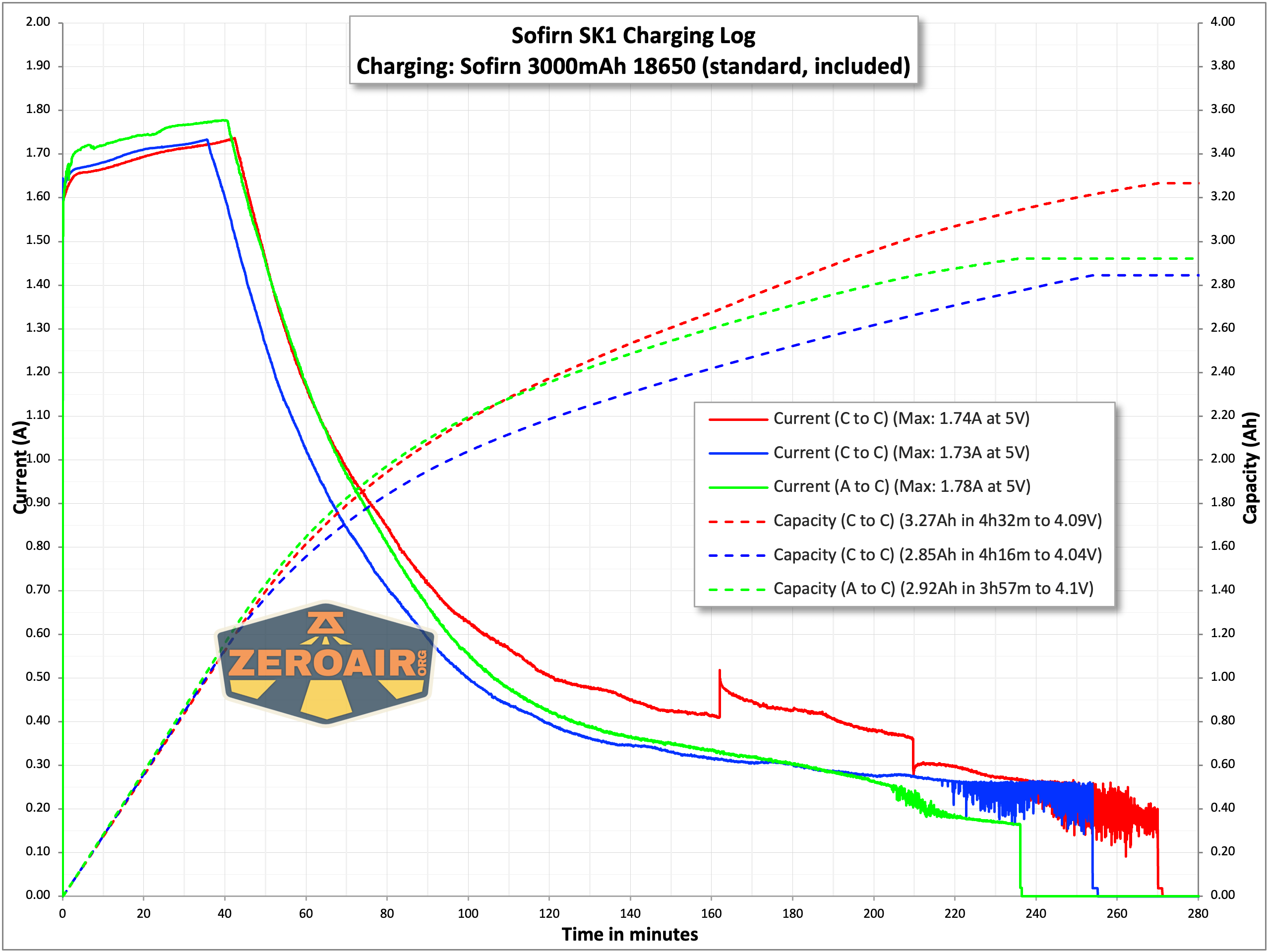 Charging works fine and proceeds at just under 2A. That’s great for this 3000mAh cell – well under 1C. Charging on the Wurkkos TD07 and Sofirn SK1 appears to be the same. It’s too fast for the 1100mAh 18350 in the TD07, but just fine for a 3000mAh 18650 in the SK1.