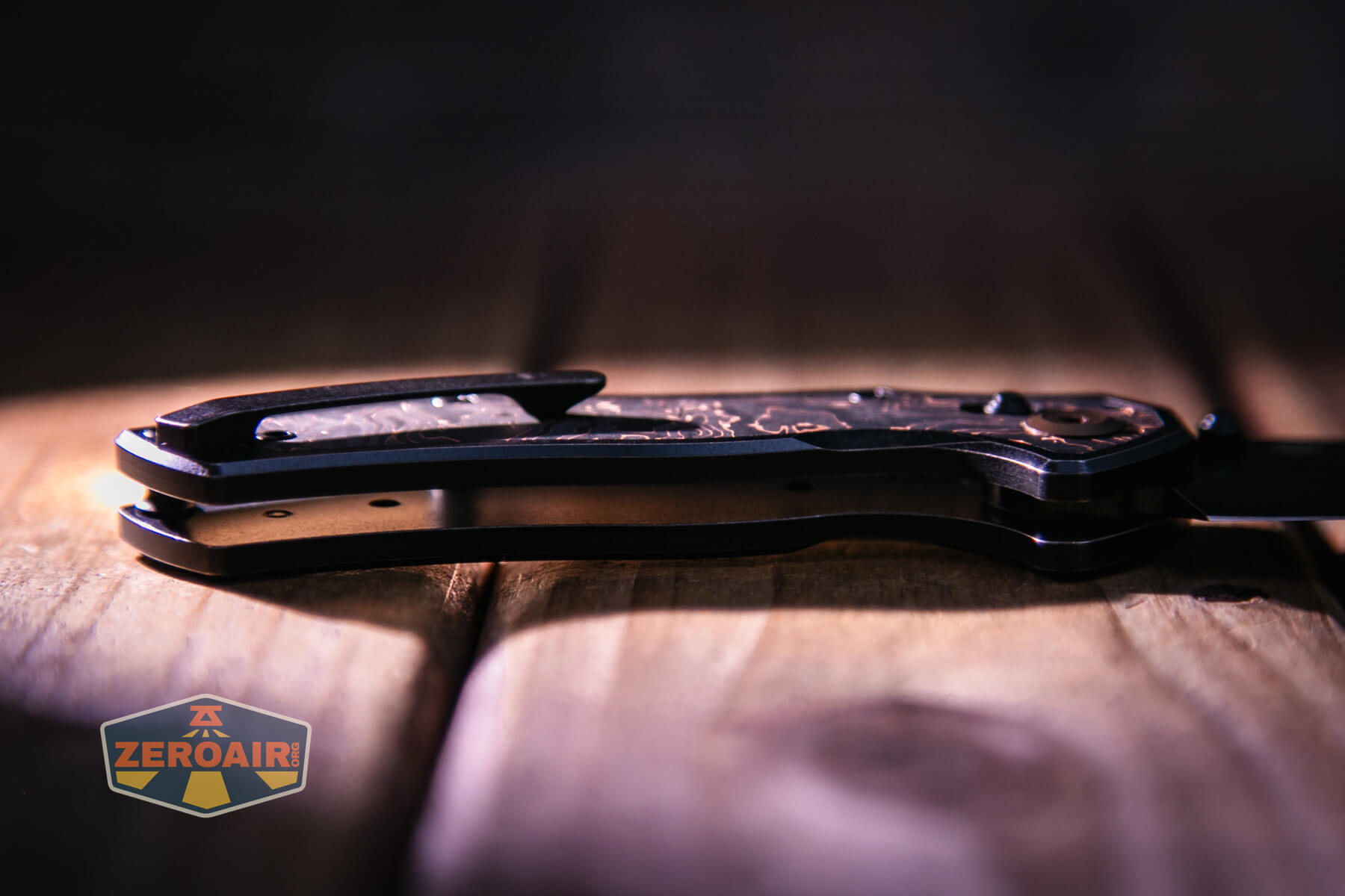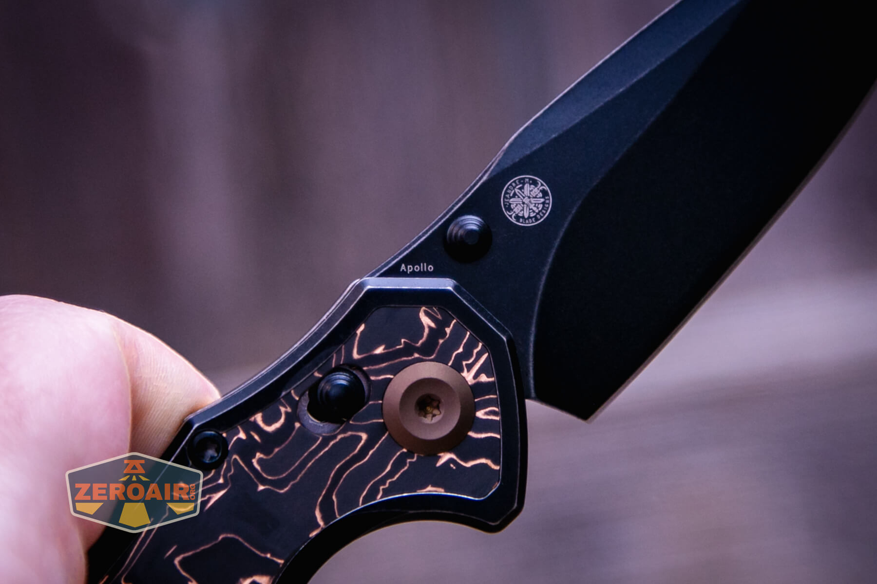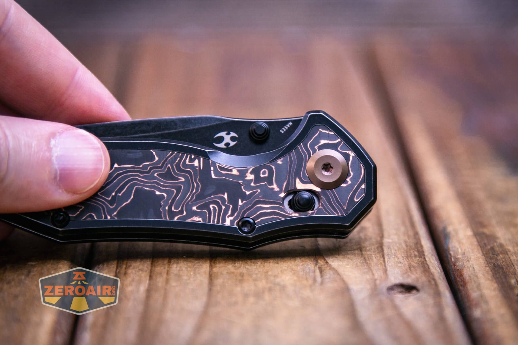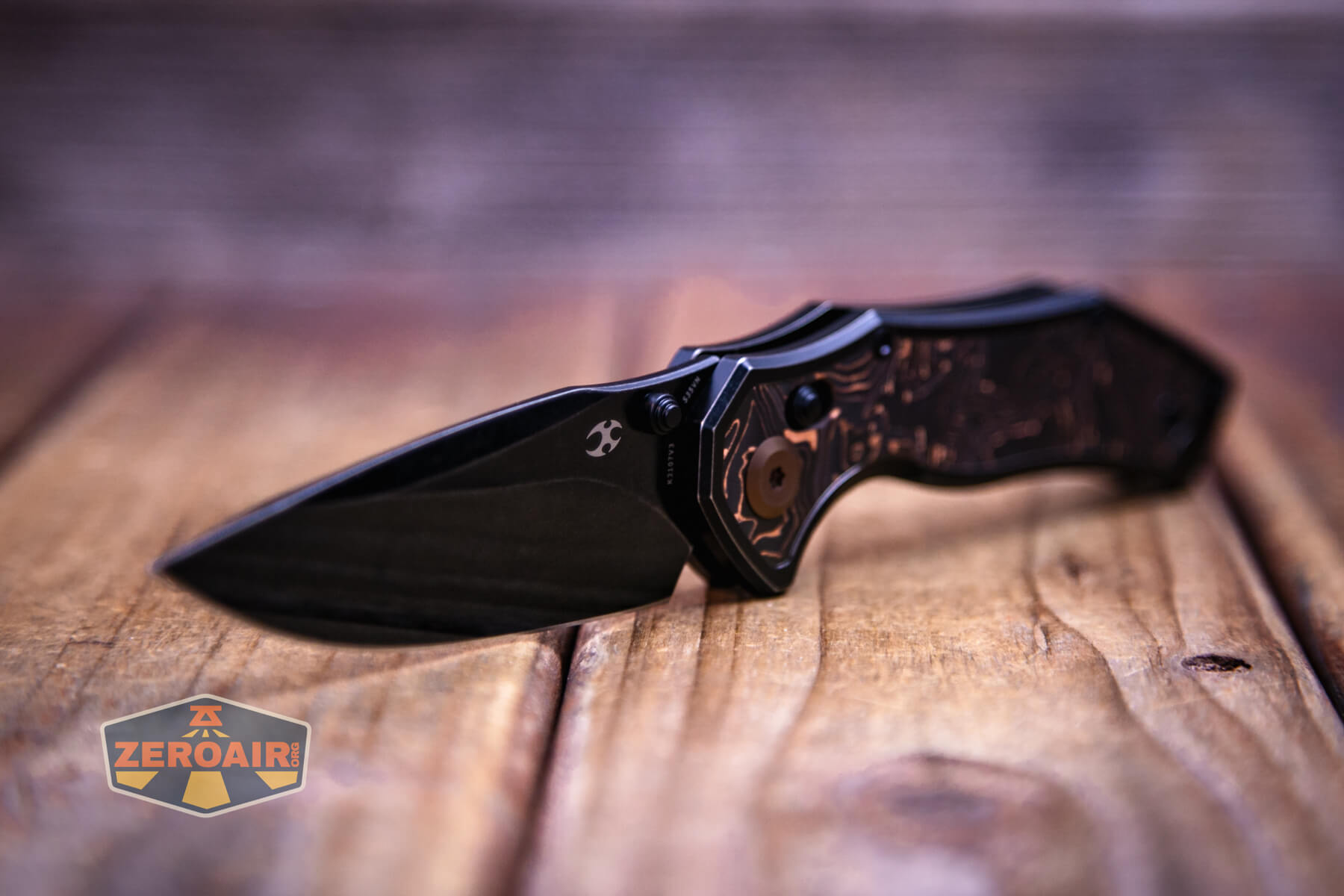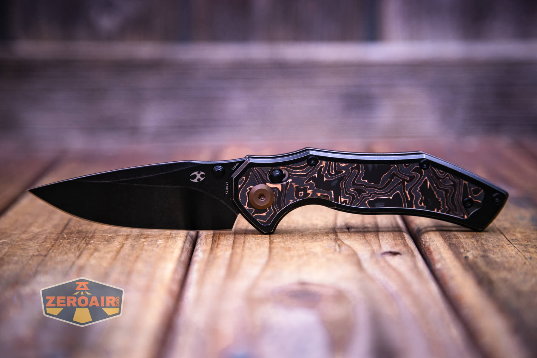 The Kansept Apollo cross bar lock knife is a very angular and clever-looking knife. I’m a huge fan of carbon fiber and the copper inlay on this one is nice.