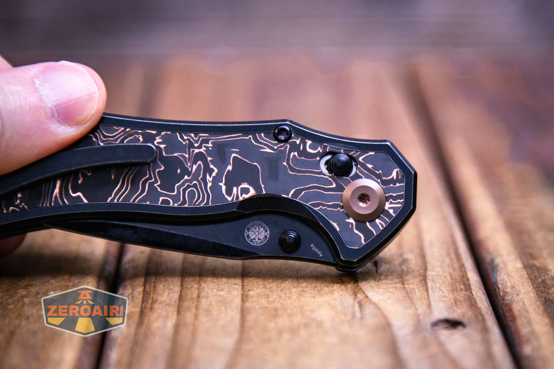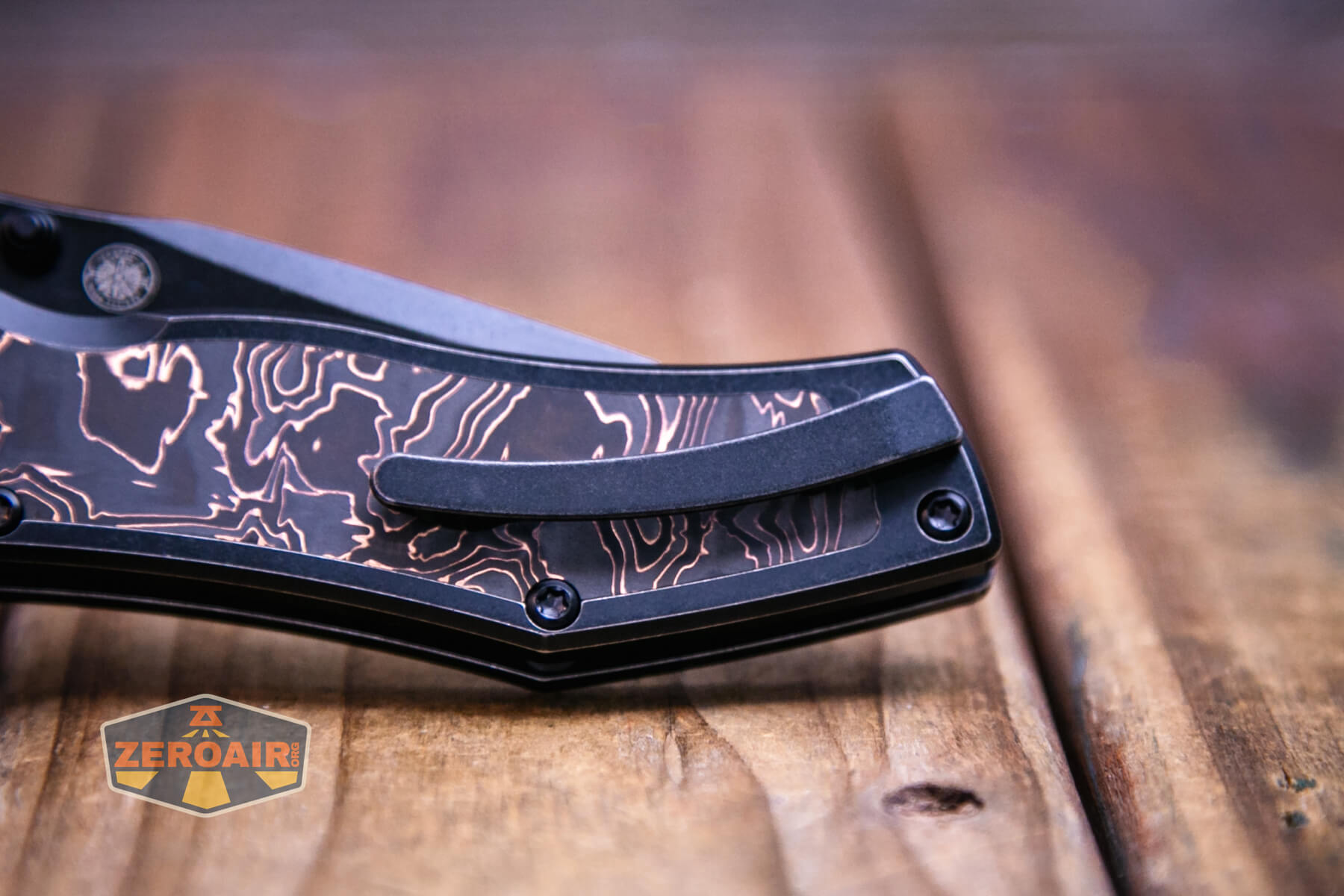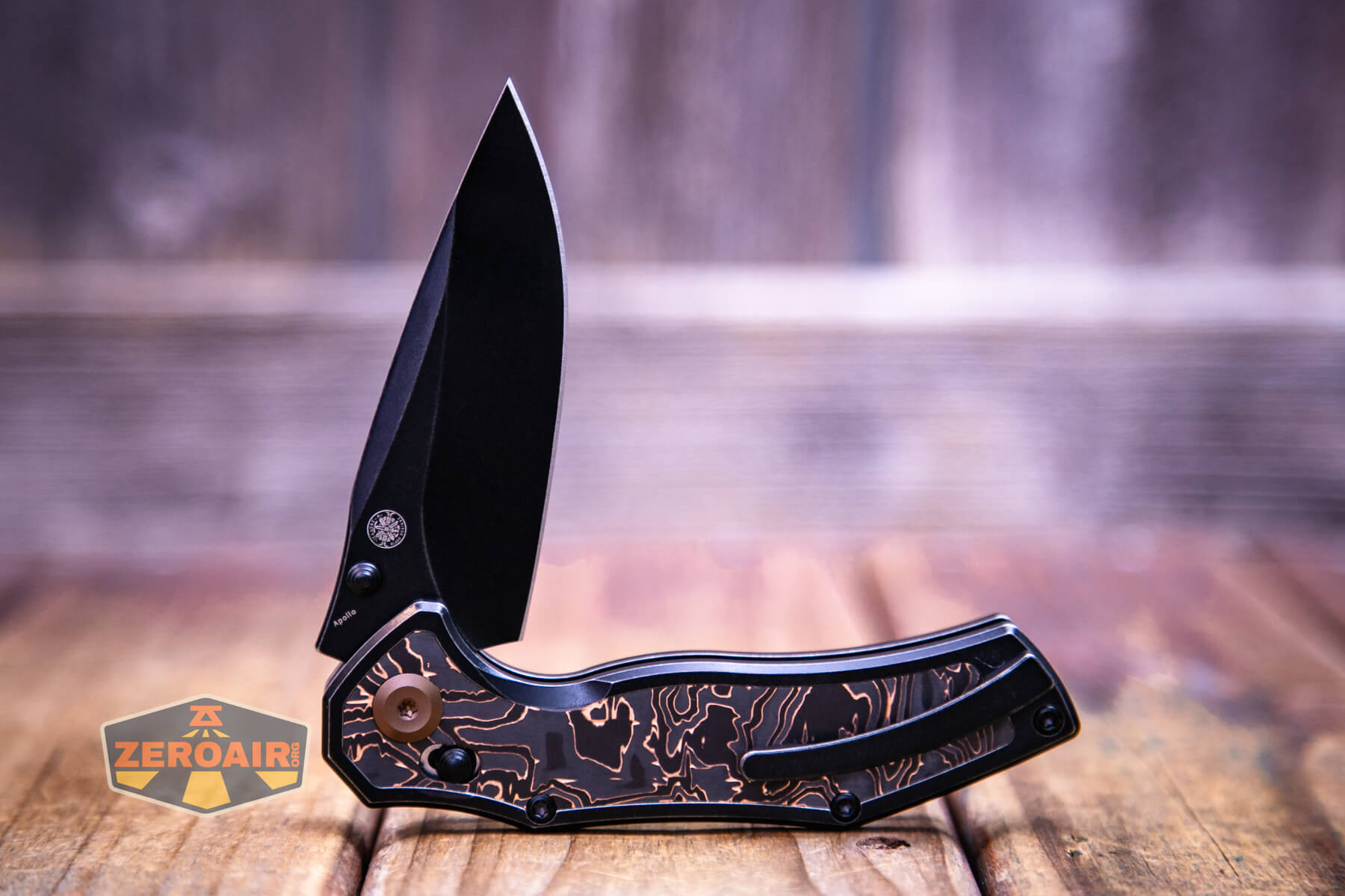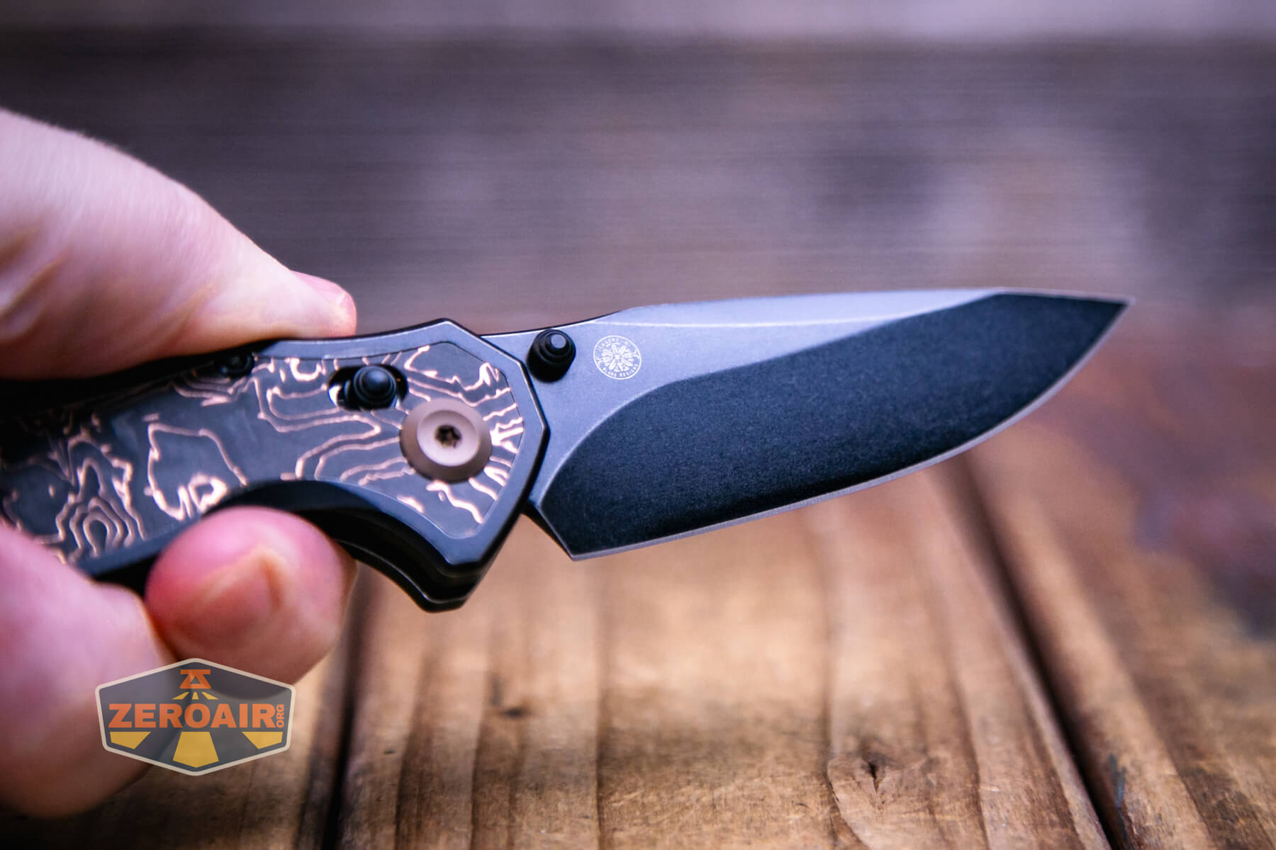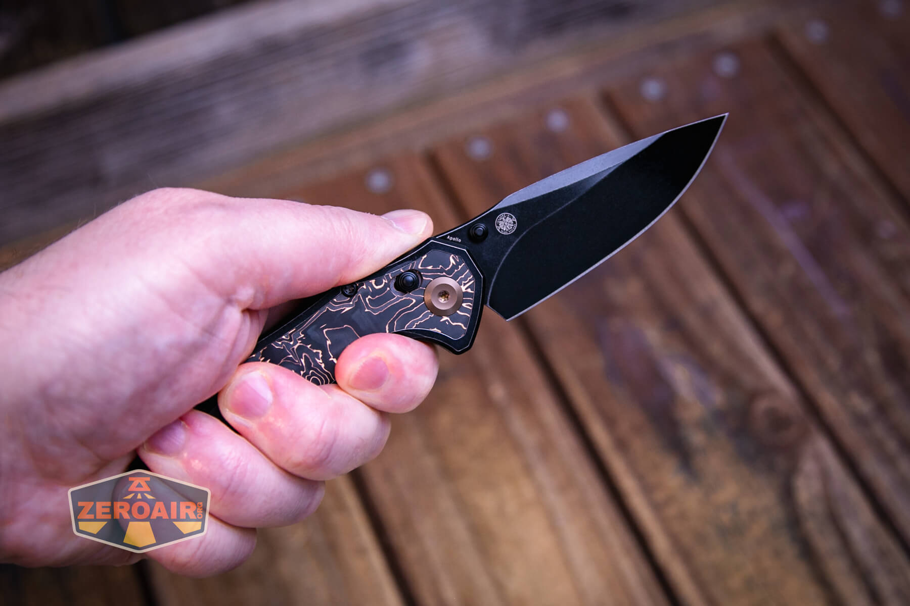 The Kansept Apollo cross bar lock knife is a very angular and clever-looking knife. I’m a huge fan of carbon fiber and the copper inlay on this one is nice.