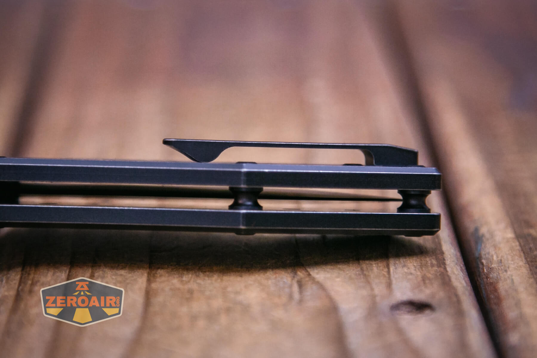 I am not sure how it attaches internally, but if it were reversible, there’d be at least some indication on this scale (above). So, despite having dual thumbstuds (and I guess, the Crossbar lock being accessible on both sides), the clip not being reversible may play into your opinion on the Kansept Apollo cross bar lock knife being ambidextrous.