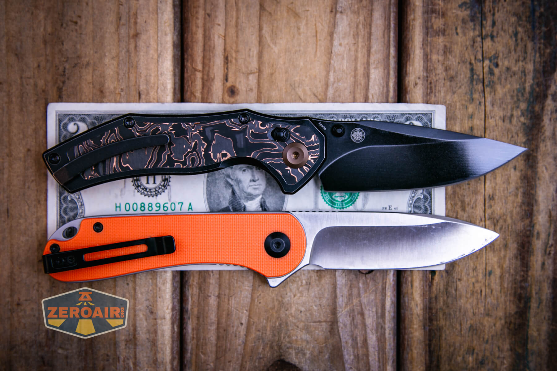 Above, you can see the Kansept Apollo knife with the Civivi Elementum in orange G10. I use that knife so much!