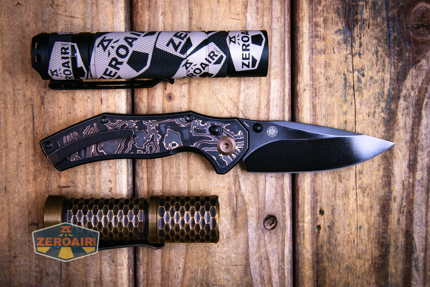 Below you can see the Kansept Apollo knife with the venerable Convoy S2+. The version below is a custom laser-engraved Convoy S2+ host by GadgetConnections.com. I did a full post on an engraved orange host right here! Or go straight to GadgetConnections.com to buy your Convoy S2+ now!