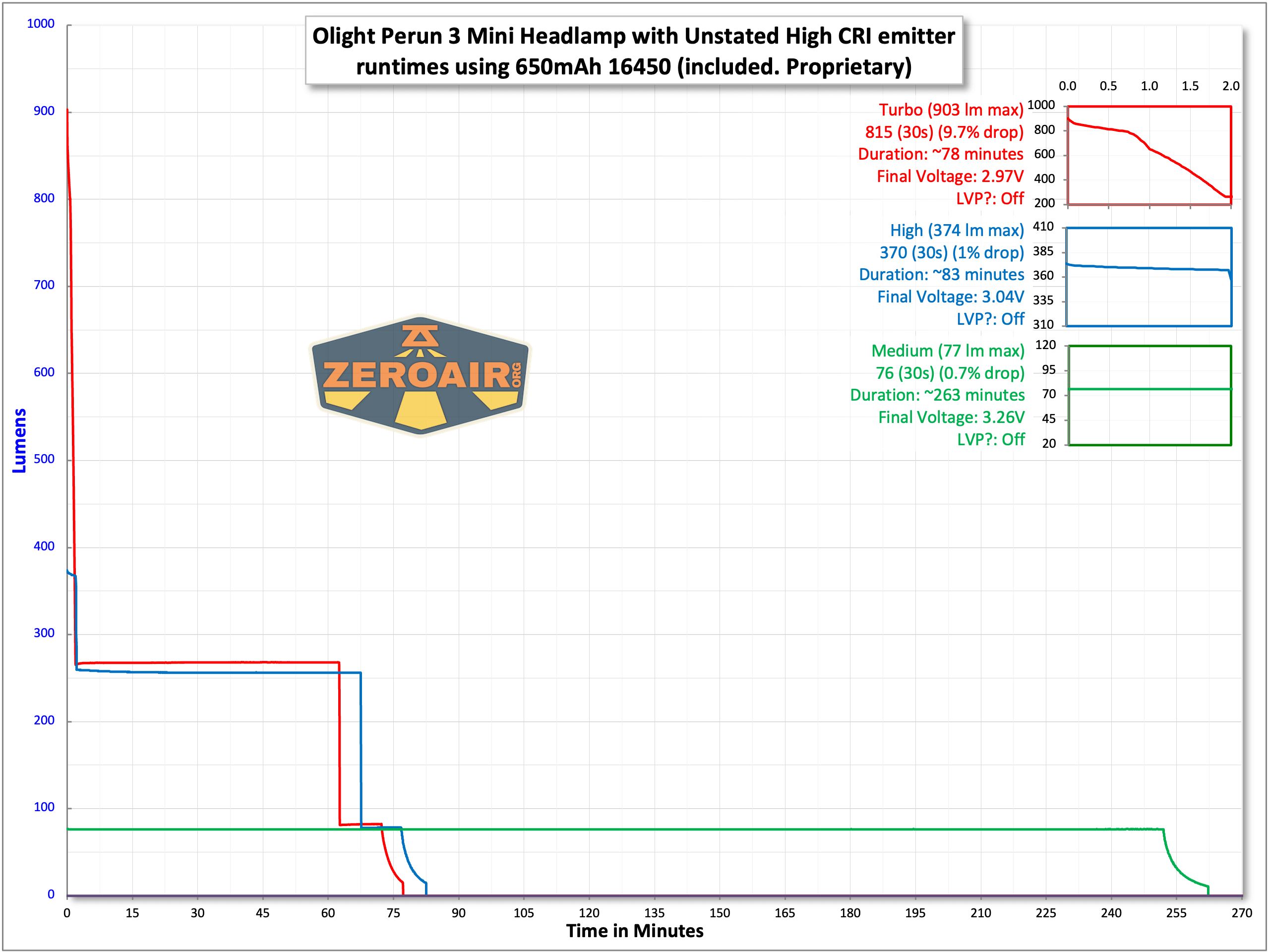 The Olight Perun 3 Mini CRI headlamp does have built-in low voltage protection and shuts off at around 3V or so.