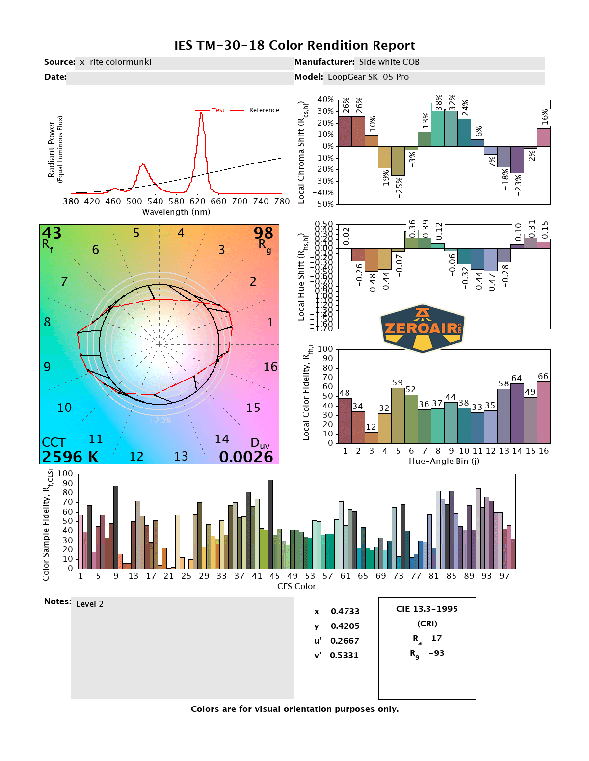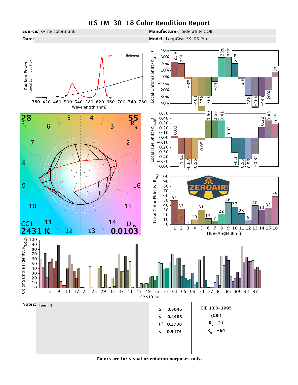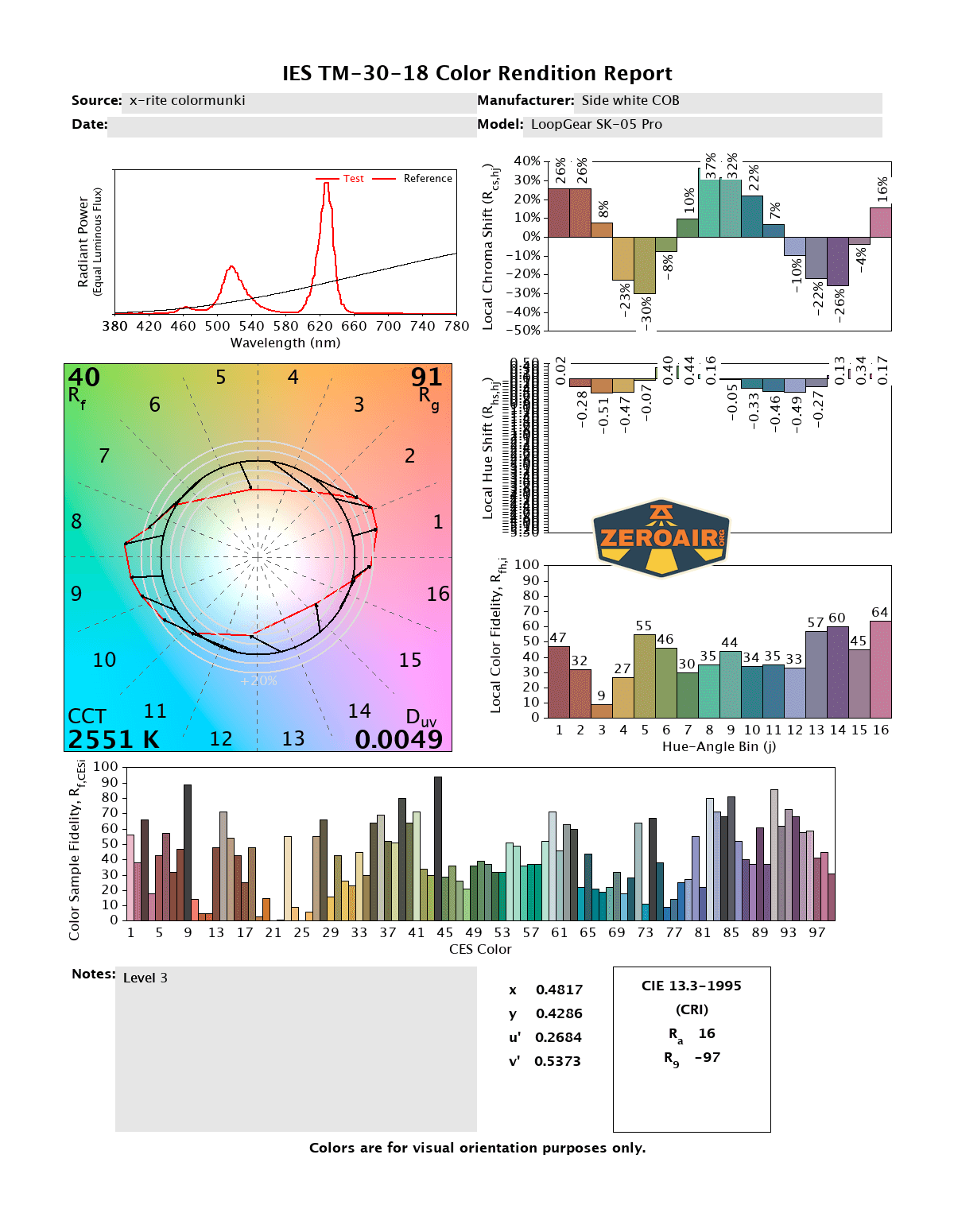LED Color Report (CRI and CCT)