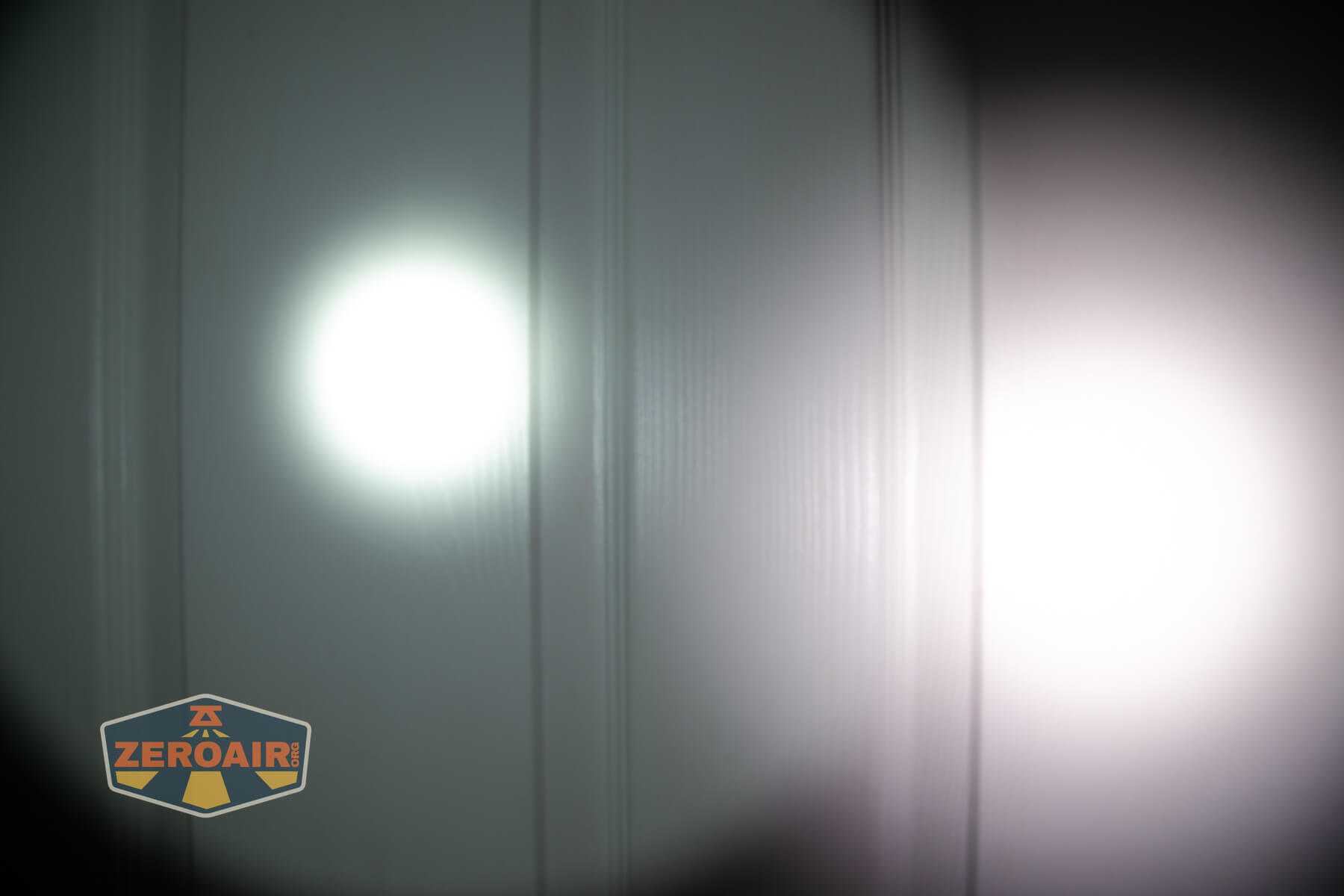 I keep the test flashlight on the left and the BLF-348 reference flashlight on the right. These photos are taken around 18 inches from the door.