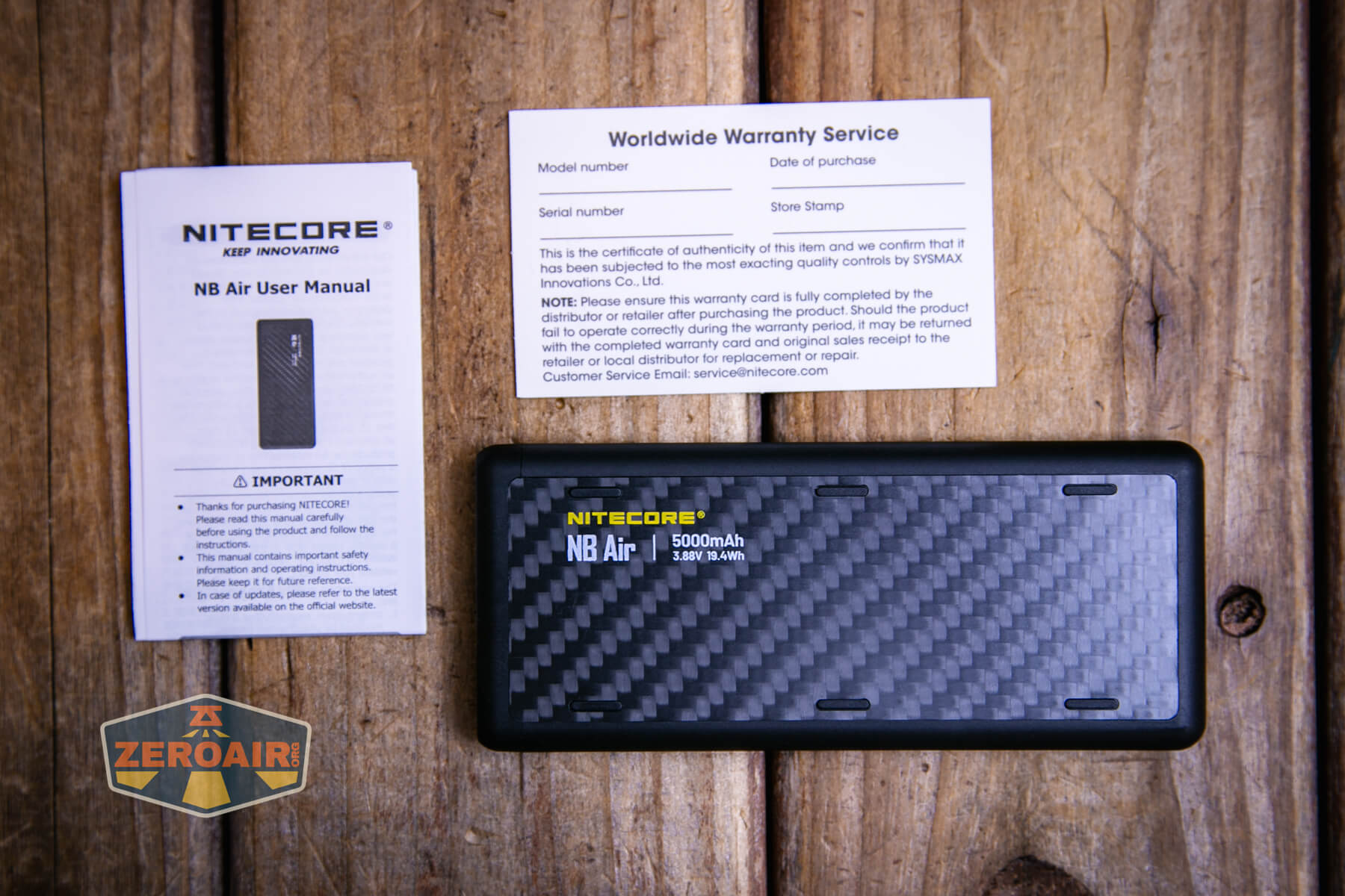 Much like a previous-generation Nitecore power bank, the NW5000, the Nitecore NB Air power bank uses carbon fiber.
