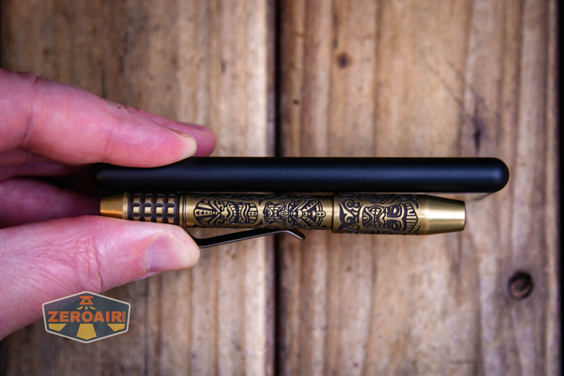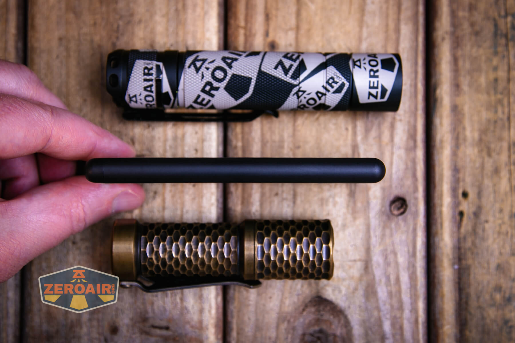 Below is the Nitecore NB Air power bank with a pen – in this case, the Ti2 Techliner Brass Tiki.