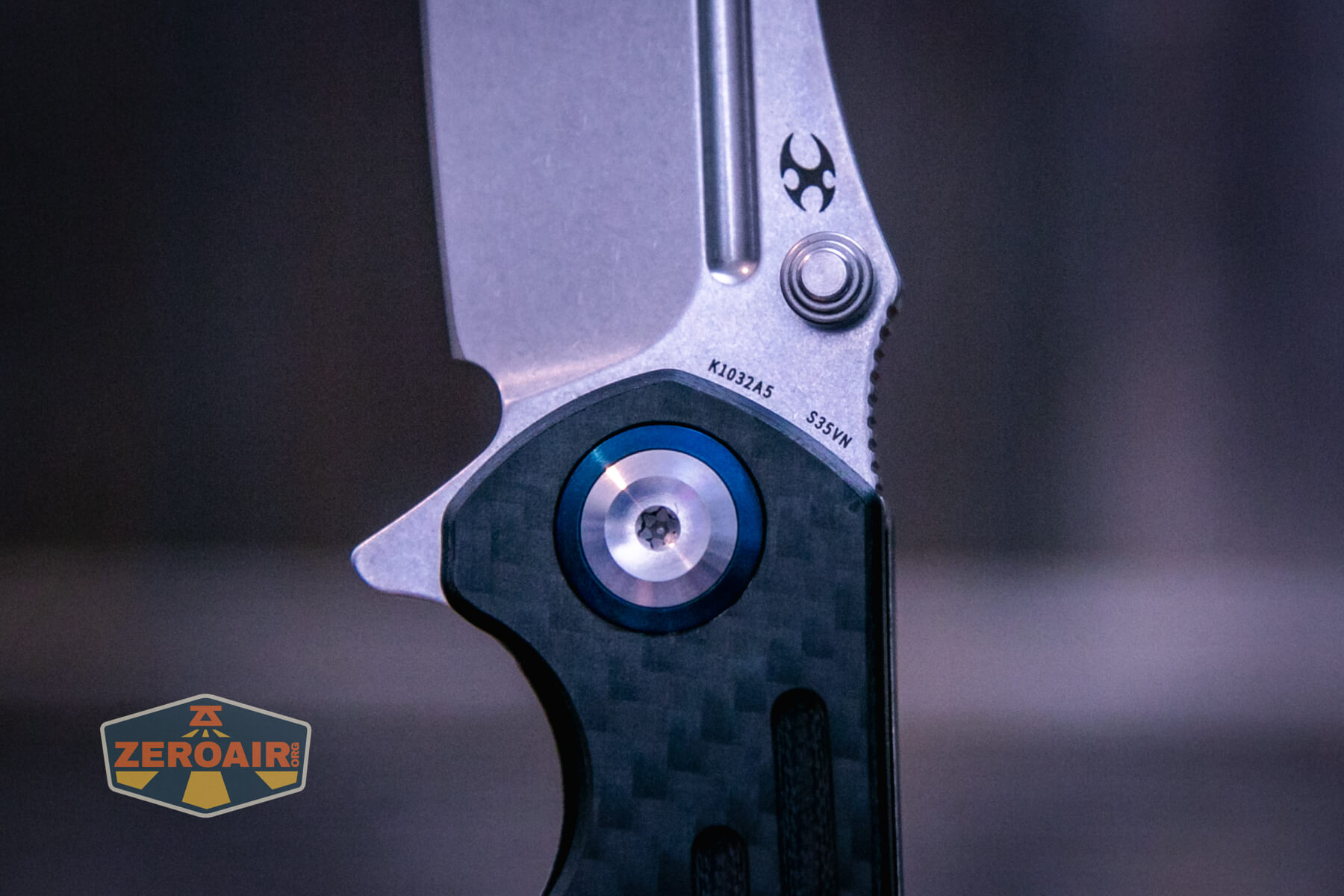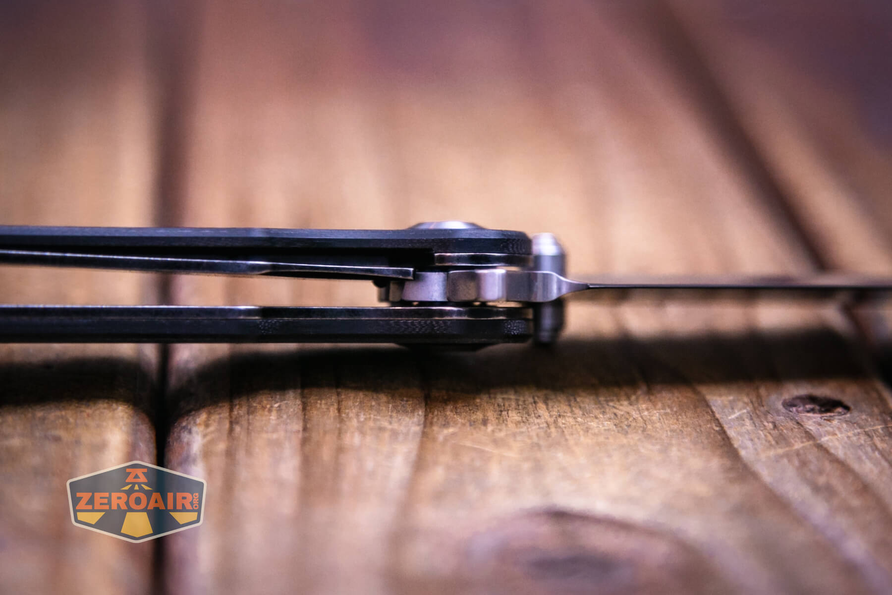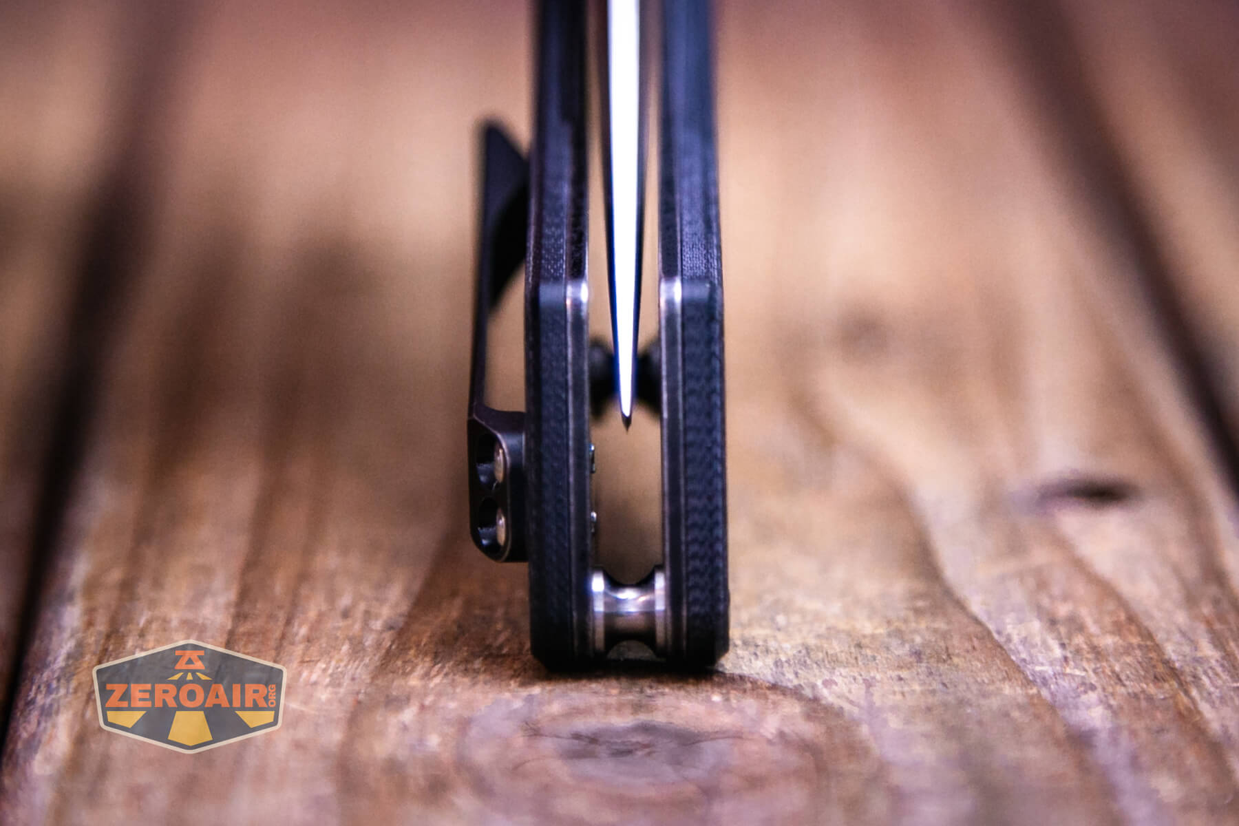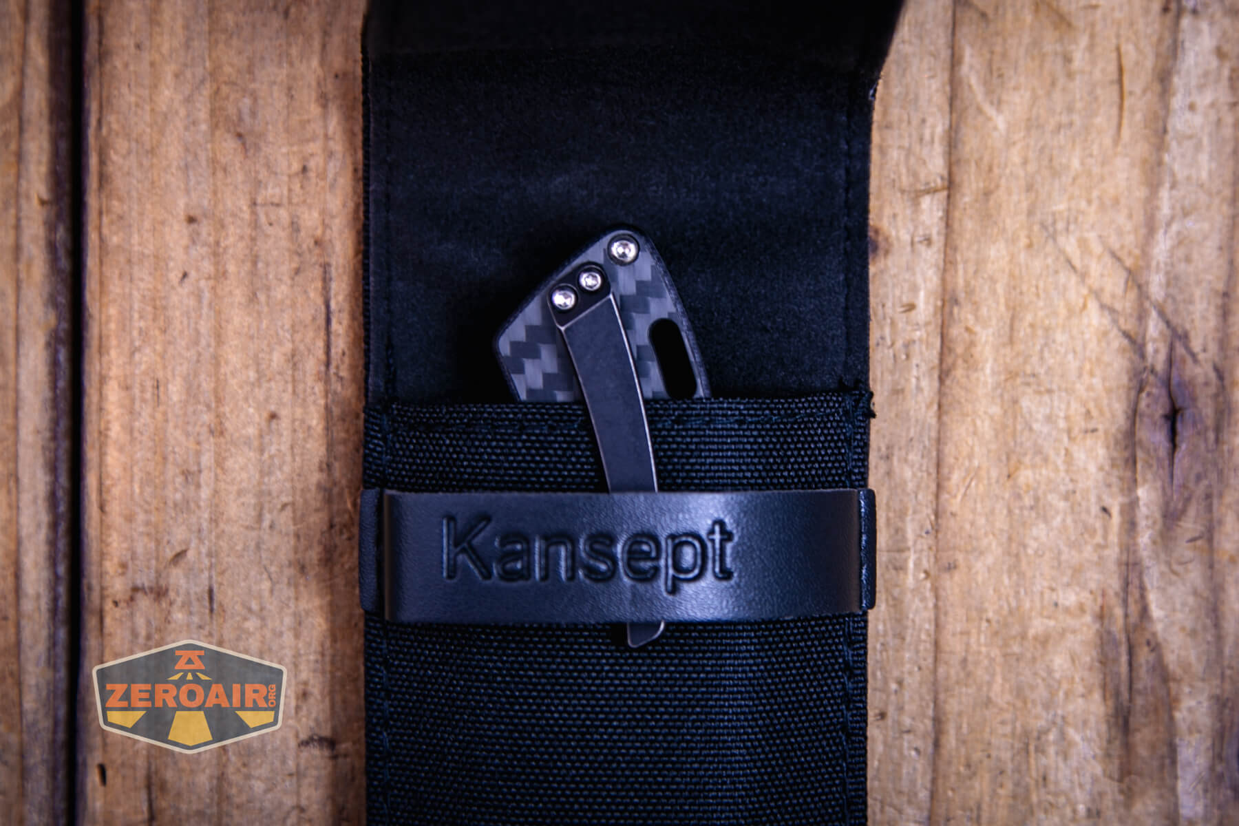 When closed, the blade shows nicely, and Kansept’s logo is visible.