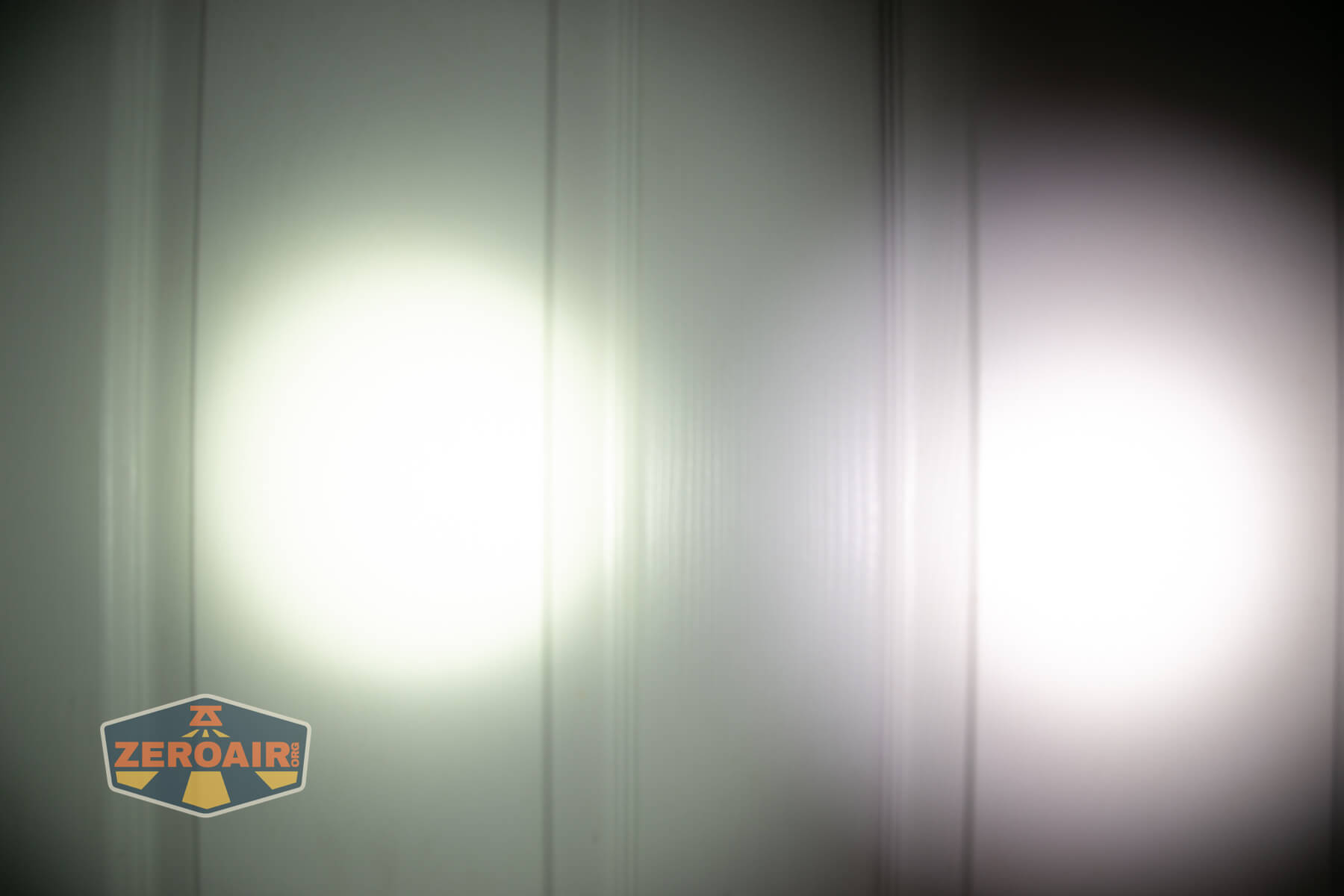 I keep the test flashlight on the left and the BLF-348 reference flashlight on the right. These photos are taken around 18 inches from the door.