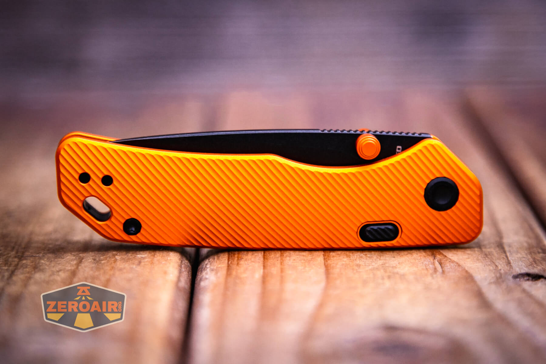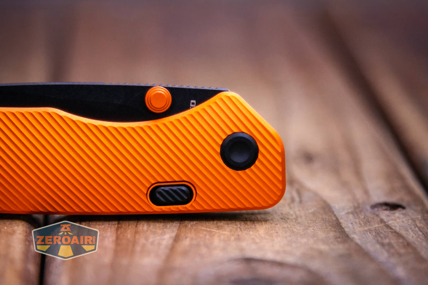 Unlocking the Marten is done by means of the top liner lock button. This button is only on one side, which is understandable if you think about how the knife lock works. (It’s basically a liner lock with this button for unlocking the liner.)