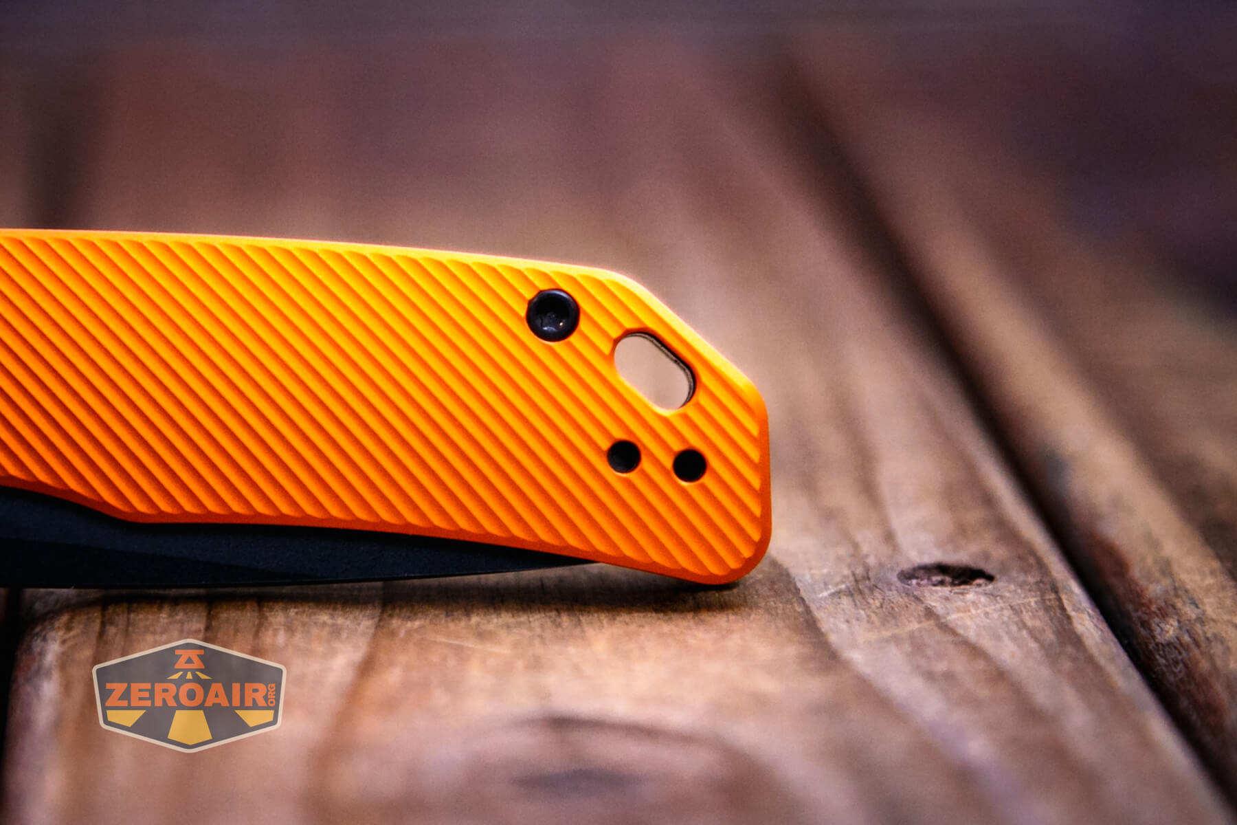 The scales on this version are aluminum (but Ultem and carbon fiber are available, too). On the scales is a pattern that provides ample grip.