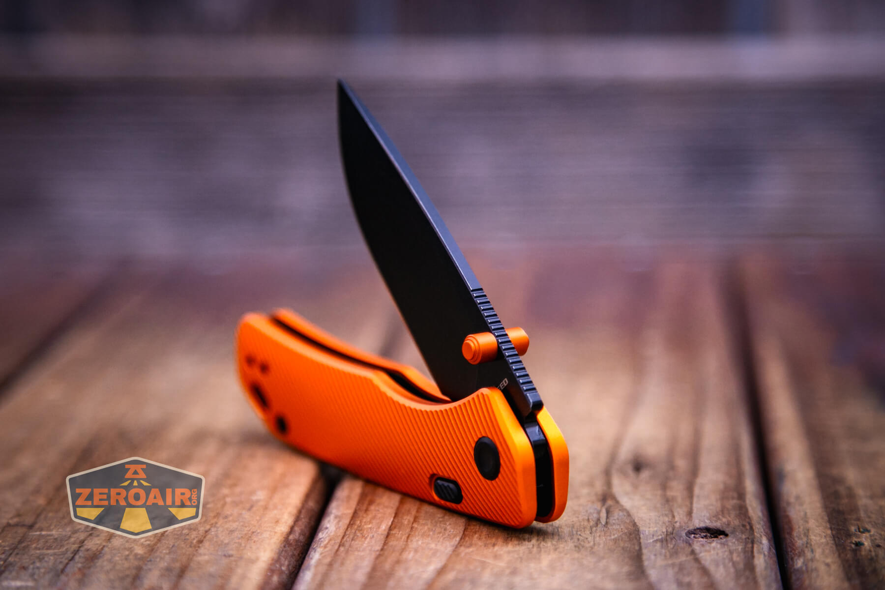 The Vosteed Marten top liner lock knife opens primarily by the thumbstud. There are two, so the knife is reasonably ambidextrous.