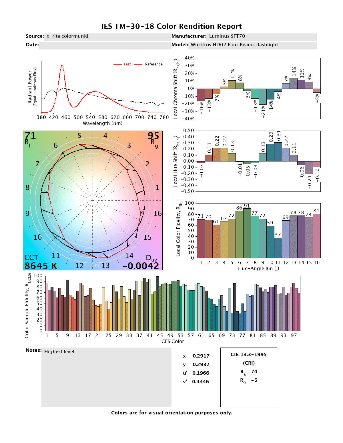 ^ Measurement disclaimer: Testing flashlights is my hobby. I use hobbyist-level equipment for testing, including some I made myself. Try not to get buried in the details of manufacturer specifications versus measurements recorded here; A certain amount of difference (say, 10 or 15%) is perfectly reasonable.