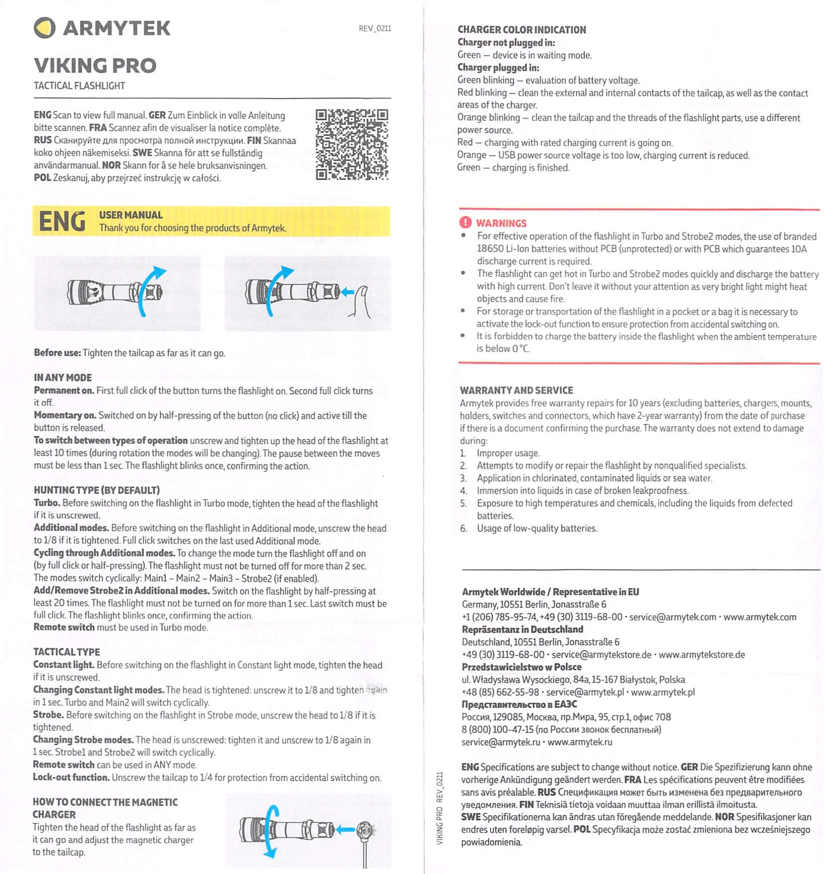 | Armytek Viking Pro Magnet USB tactical flashlight | |